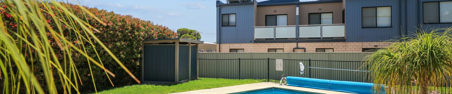 The home has both a balcony on the first floor as well as an enclosed rear courtyard. There is room for two cars in the double lock-up Garage (which has internal access to the home). The shared facilities available include a solar-heated in-ground pool, communal outdoor shower and a shady BBQ area, plus some additional communal parking spots available on a first-come, first-served basis.