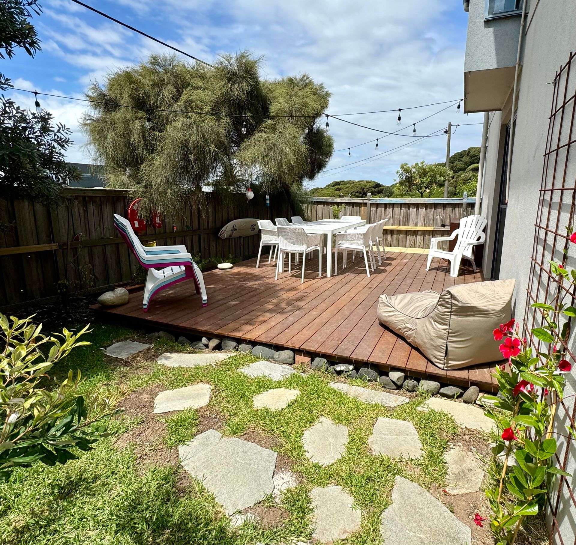 Outdoor living is catered for with the fully enclosed yard (pets welcome) and 2 outdoor settings (seating up to 12 people) and a hot & cold water outdoor shower. There is space for parking for one vehicle on site, with additional parking available on the street.
