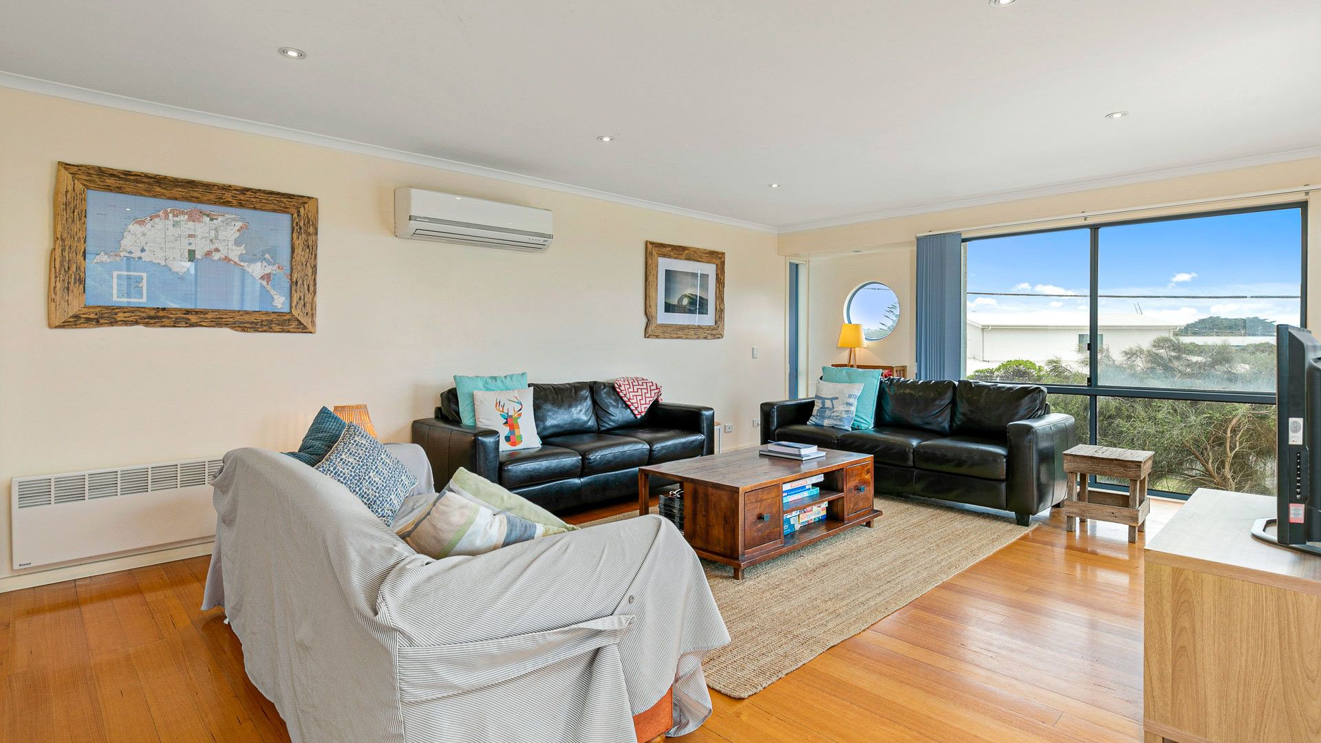 The home is very well serviced by wall heaters in 2 bedrooms, portable heaters in the other 2, wall mounted air conditioning in the Master Bedroom and upstairs living room. There are additional portable fans.