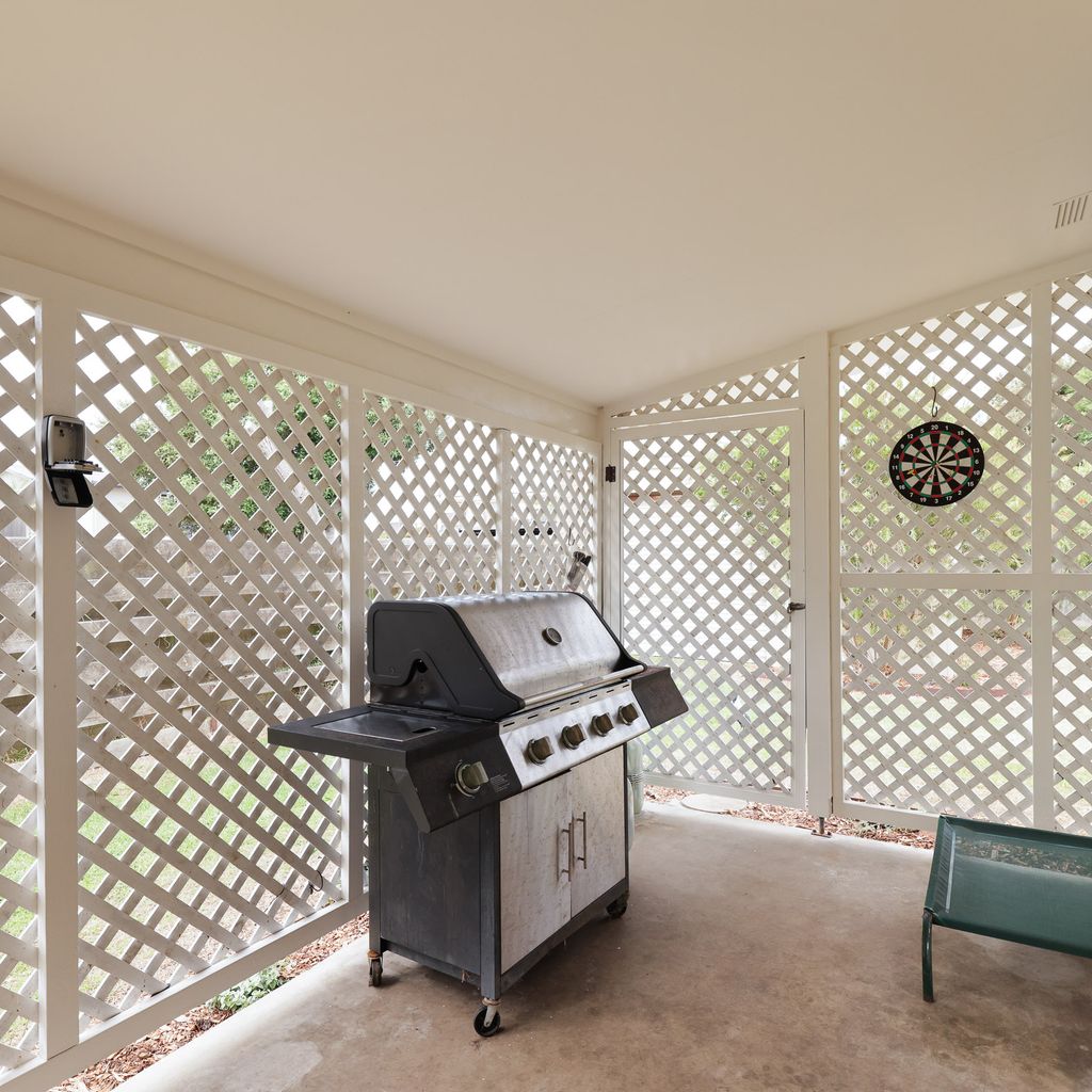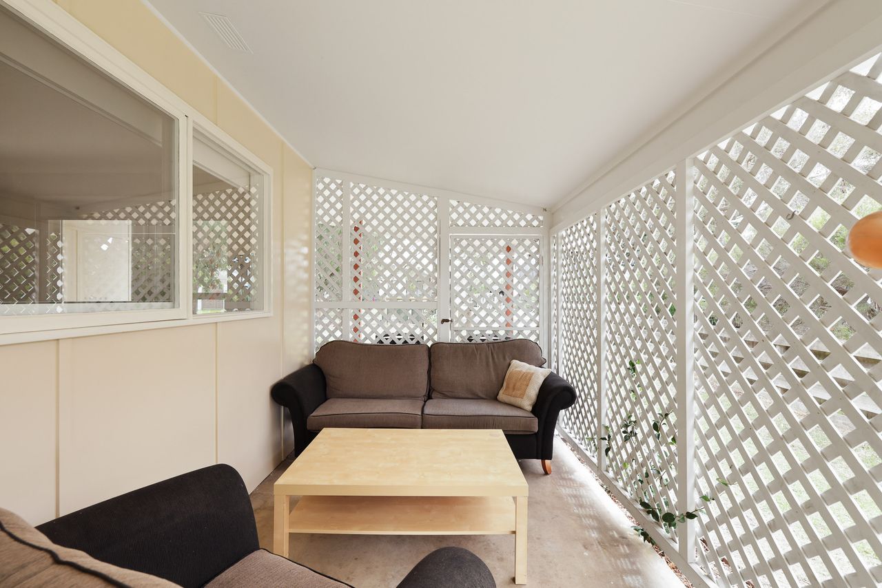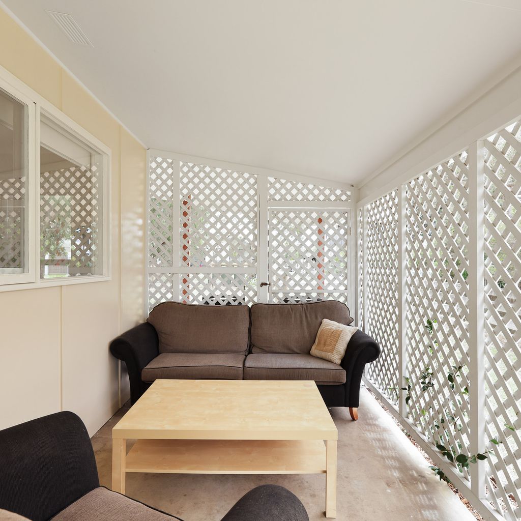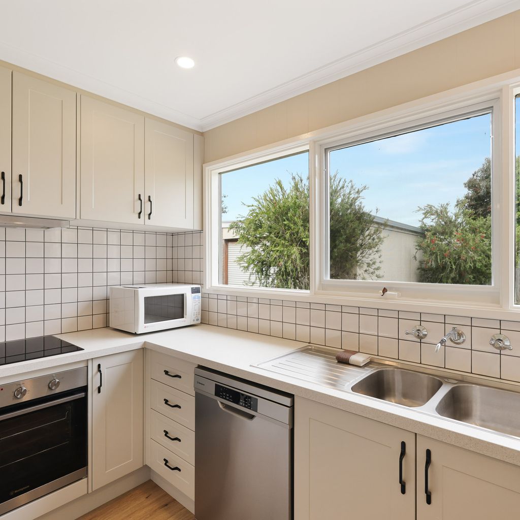 The central hall provides access to the open plan Kitchen/Dining/Living Room (with 60" smart TV, DVD player & movie library) which in turn leads out to the covered Patio. Also off the Hall are Bedroom 2 (with BIR), Bedroom 3 (with chest of drawers & hanging rack), a fully equipped Laundry/Bathroom (with washing machine, clothes dryer, shower with hip bath & basin) and Bedroom 1 with BIR and an ensuite (with shower & toilet) that also opens on to the covered Patio.