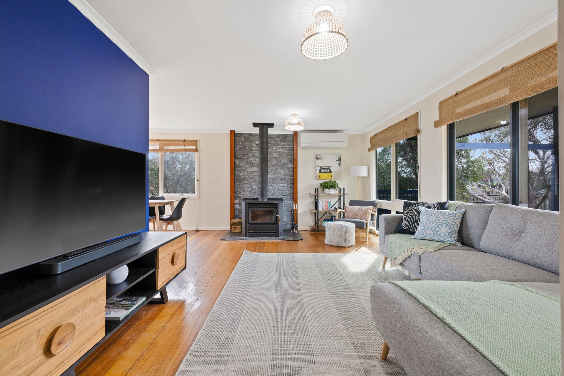 There is a wall mounted reverse cycle airconditioner in the Living/Dining room as well as a Coonara style wood heater (some wood provided to get you started), wall mounted electric heating in all bedrooms, plus three additional stand-alone fans which can be used where required.