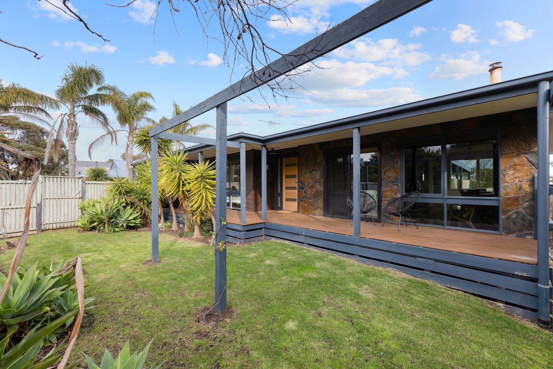 “Back Beach Oasis” is a delightful single-storey family home in Smiths Beach just a comfortable walk from the YCW beach and short drive to the Grand Prix Track and supermarkets, restaurants & cafés of Cowes. Some of the many features of this lovely home are detailed below:
