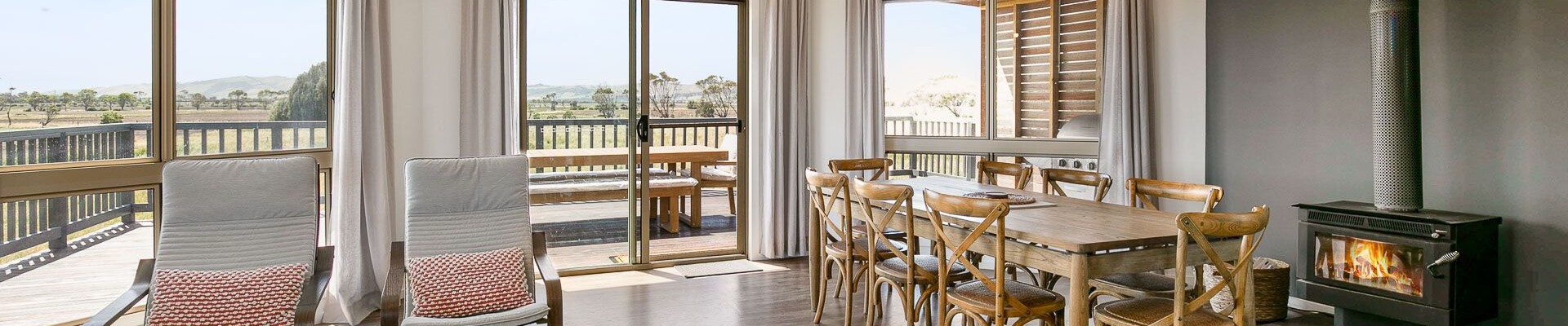 Featuring a large outside deck with barbecue facilities and long dining table, Bass River Farm provides spacious secluded accommodation to relax and unwind. Set on acreage next to the Bass River, the farm is home to friendly miniature Galloway cows, chickens and Guinea fowl. A wide array of beautiful native water birds also visit Bass River farm. For this reason, unfortunately the farm is definitely not pet friendly and we are not able to accommodate groups with pets. A firepit and seating area has also been added to the home, making the outdoor area even more attractive on those winter days and nights. You will need to supply your own firewood and matches.