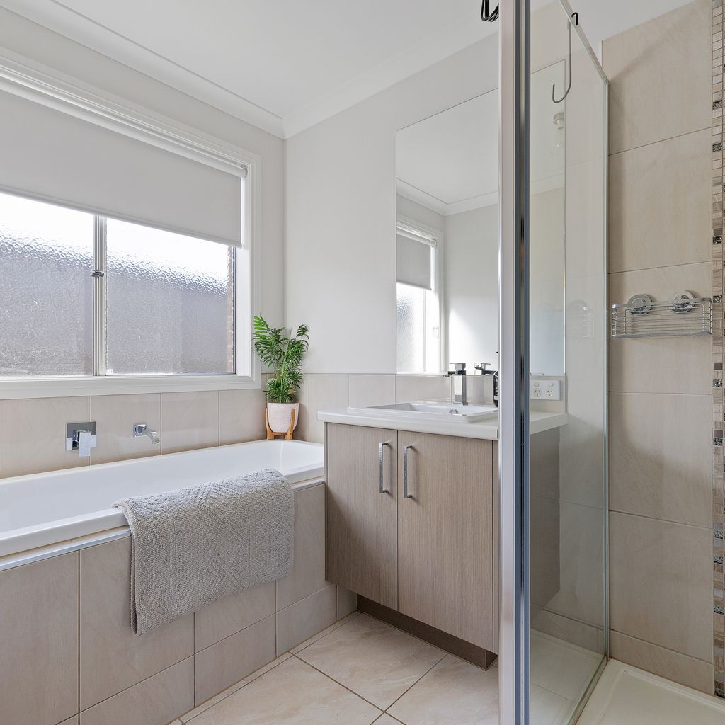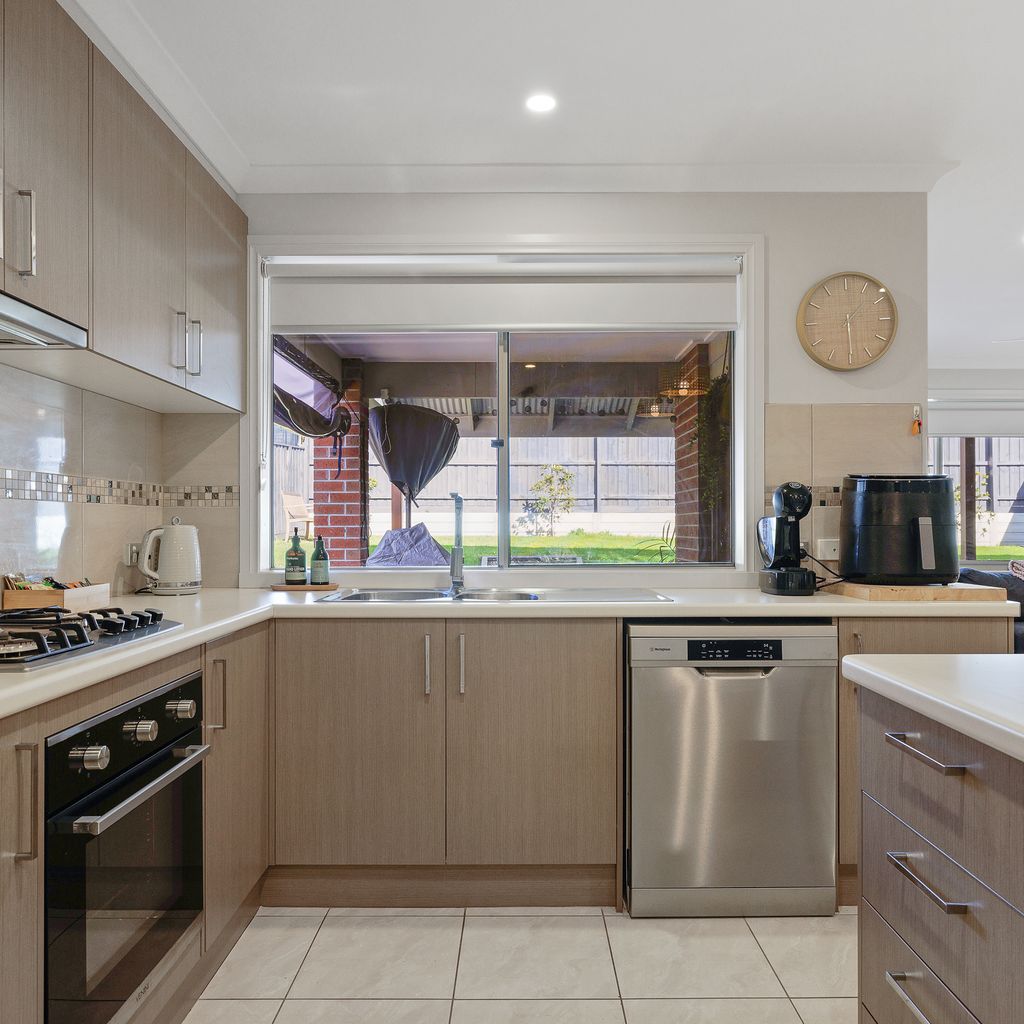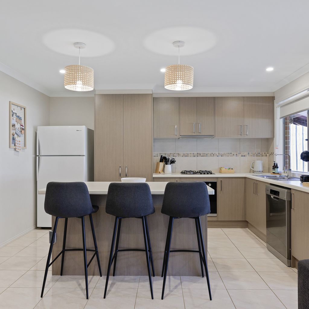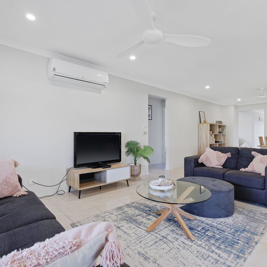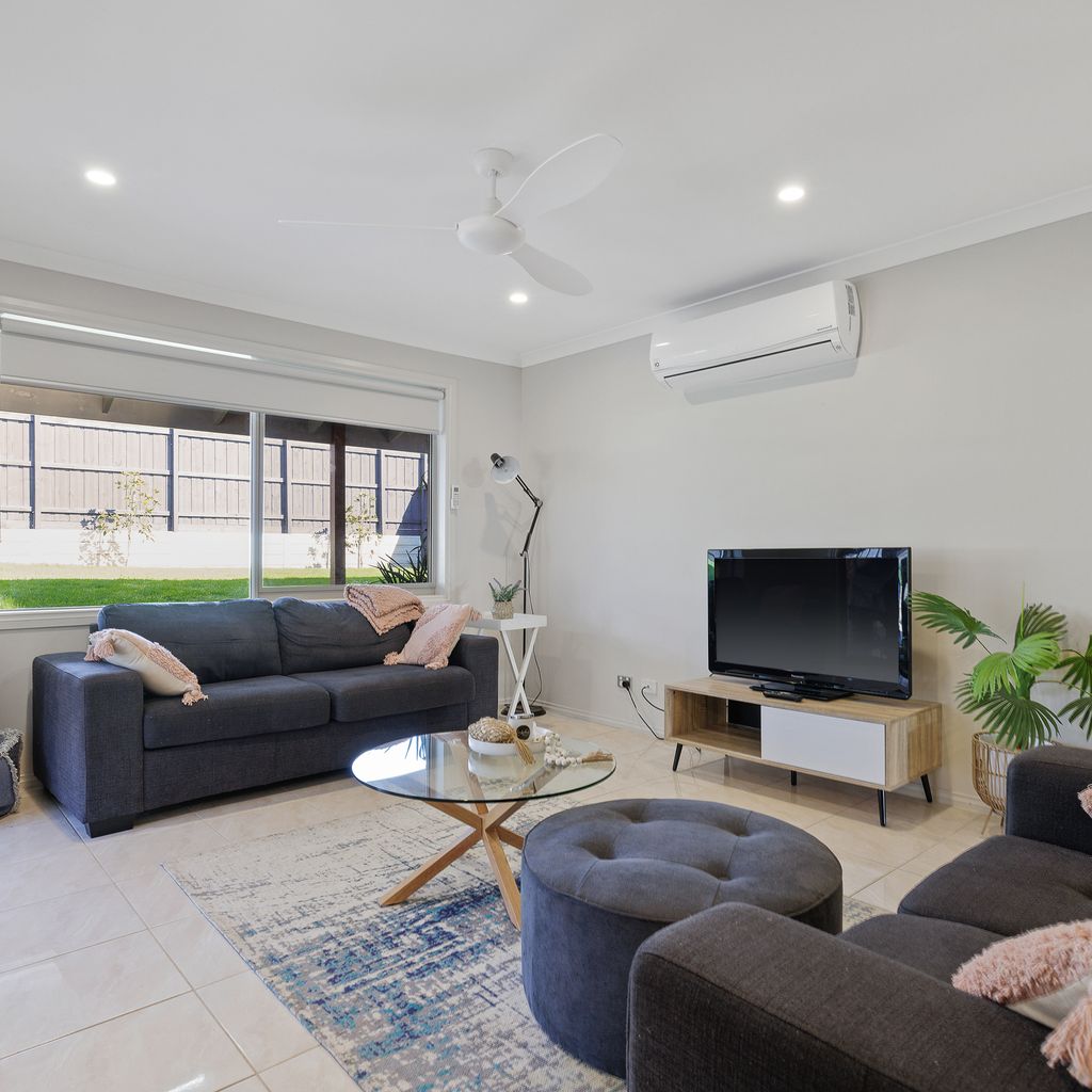The Main Bedroom at the front of the home has a walk-through robe and ensuite (with shower & toilet). The central hallway leads past a Family Room (with smart TV & DVD Player) to the open plan Kitchen/Dining/Living Room (with TV) which in turn provides access to the covered Alfresco. Bedrooms 2 and 3 (each with BIR) are off the main Living Room, as is the main Bathroom (with shower & bath) and a separate toilet. The fully equipped Laundry (with washing machine) is accessed from the Kitchen. The double Garage has internal access into the home, plus direct access to the rear yard.