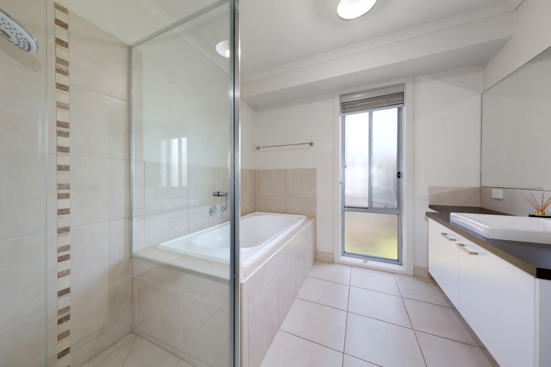 The Entry Hall provides access to the front Sitting Room, and leads to the open plan Kitchen / Dining / Living Room (with 50" smart TV) which provides access to the Patio & rear Deck. A side Hallway leads to Bedroom 1 which has a WIR and ensuite (with shower & toilet), Bedrooms 2 and 3 (each with BIR), a Bathroom (with bath & shower), a separate Toilet and a Laundry (with washing machine).