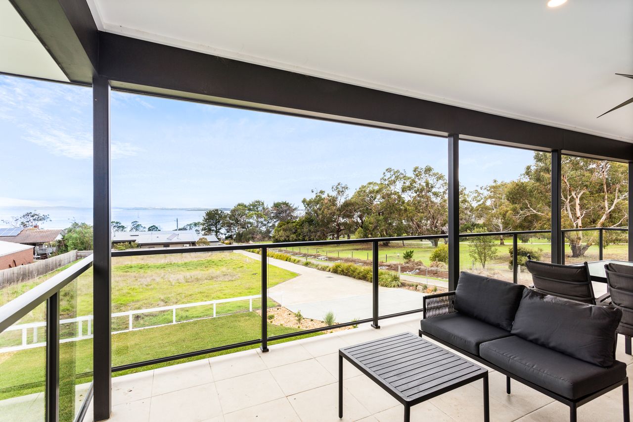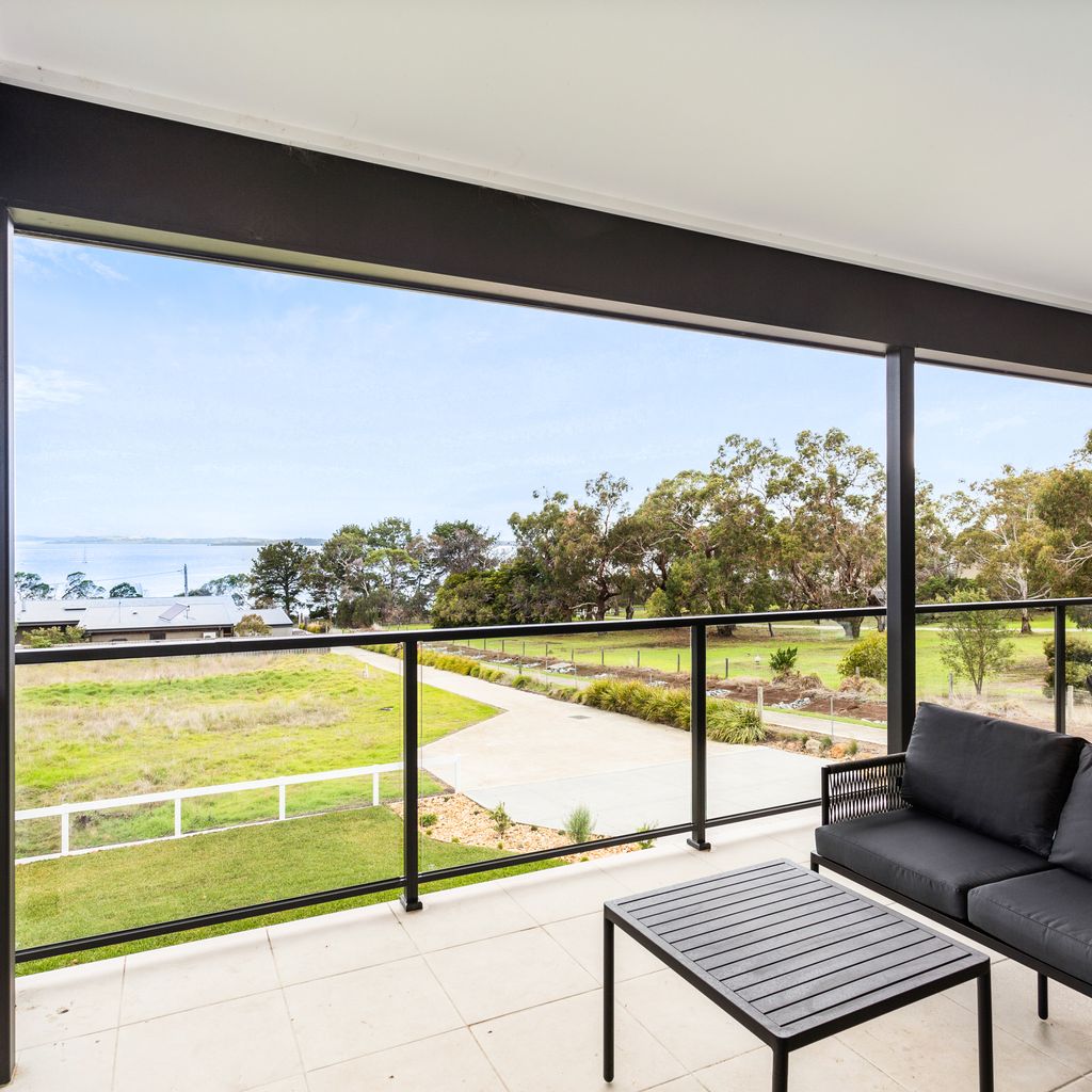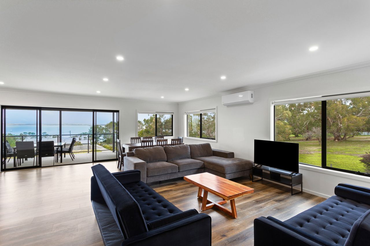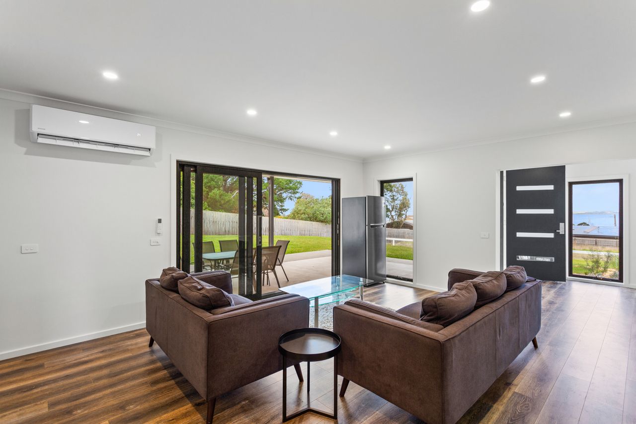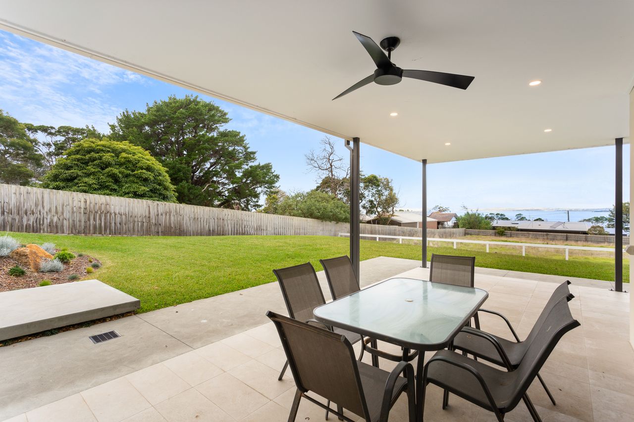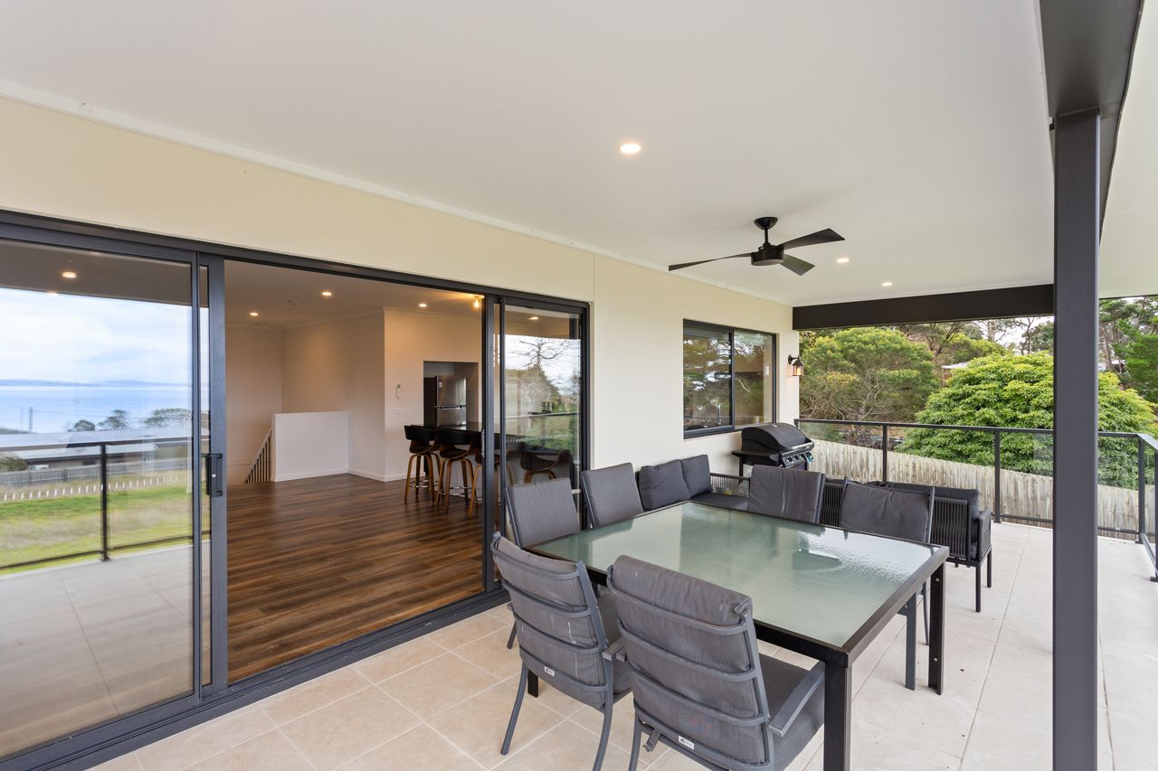 The fantastic covered upstairs front Verandah (with gas BBQ, table for 6 and two small outdoor lounges) has stunning water views over the Churchill Island Marine National Park. The downstairs Alfresco (with seating for 6) overlooks the yard, and there is a Double Garage (with table tennis table & internal access). Parking is available for up to 4 cars in the long, wide driveway.