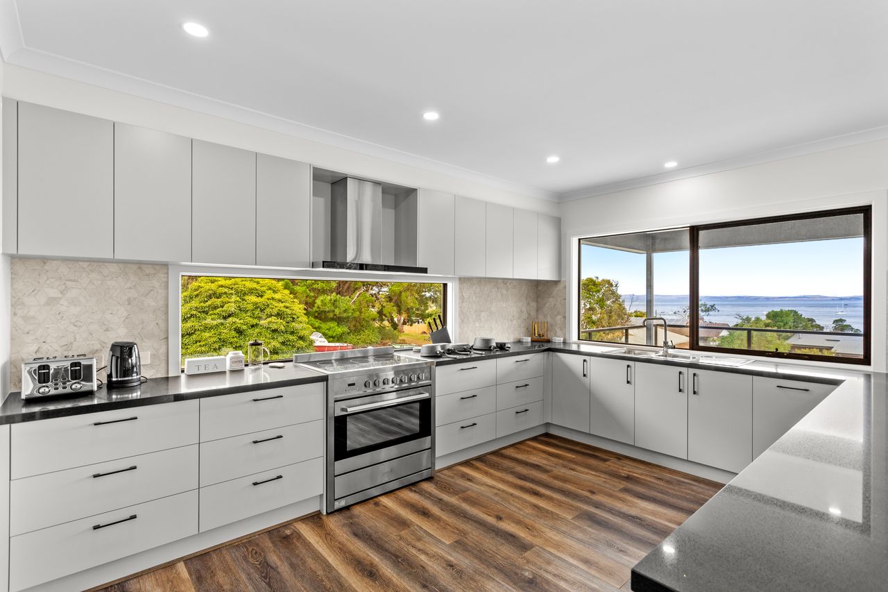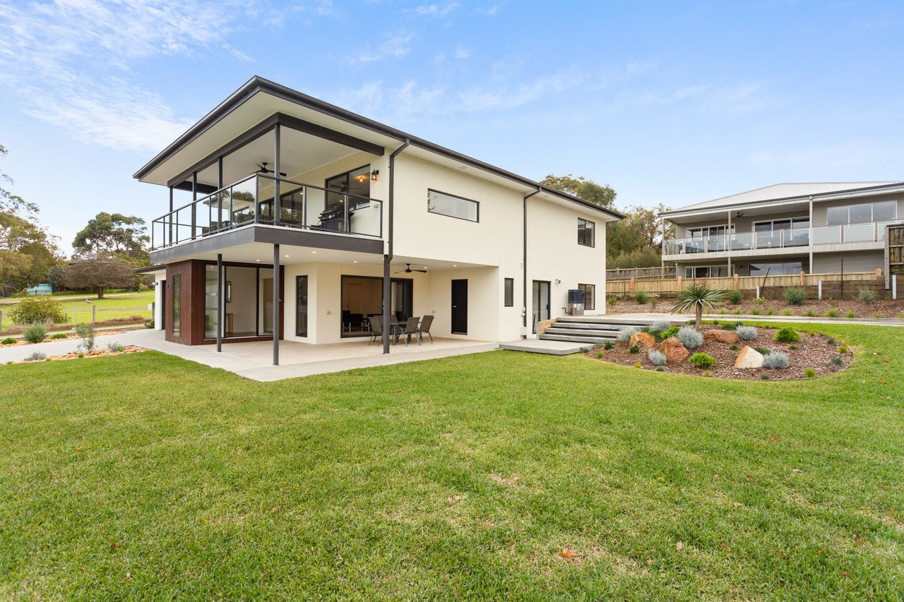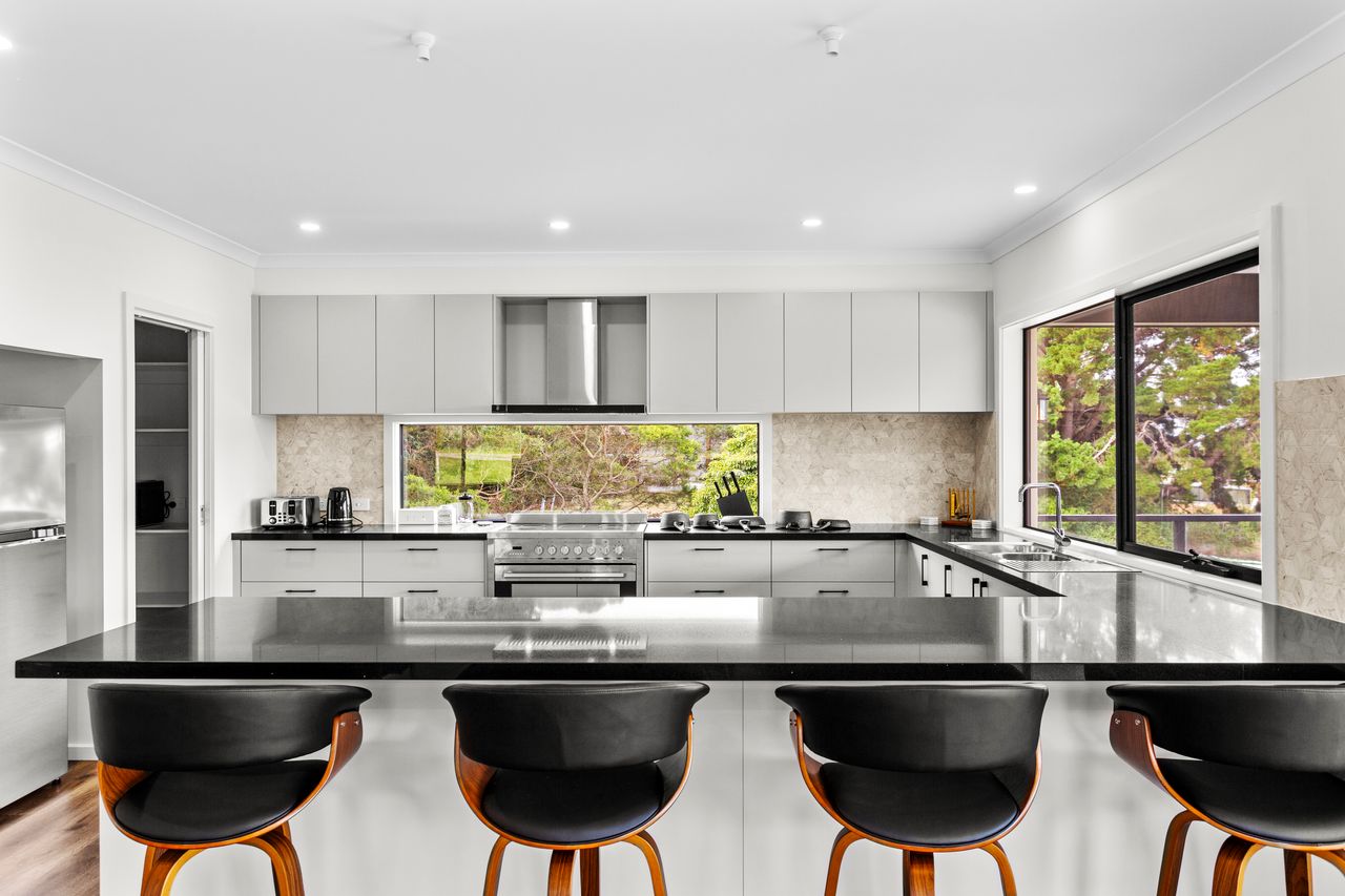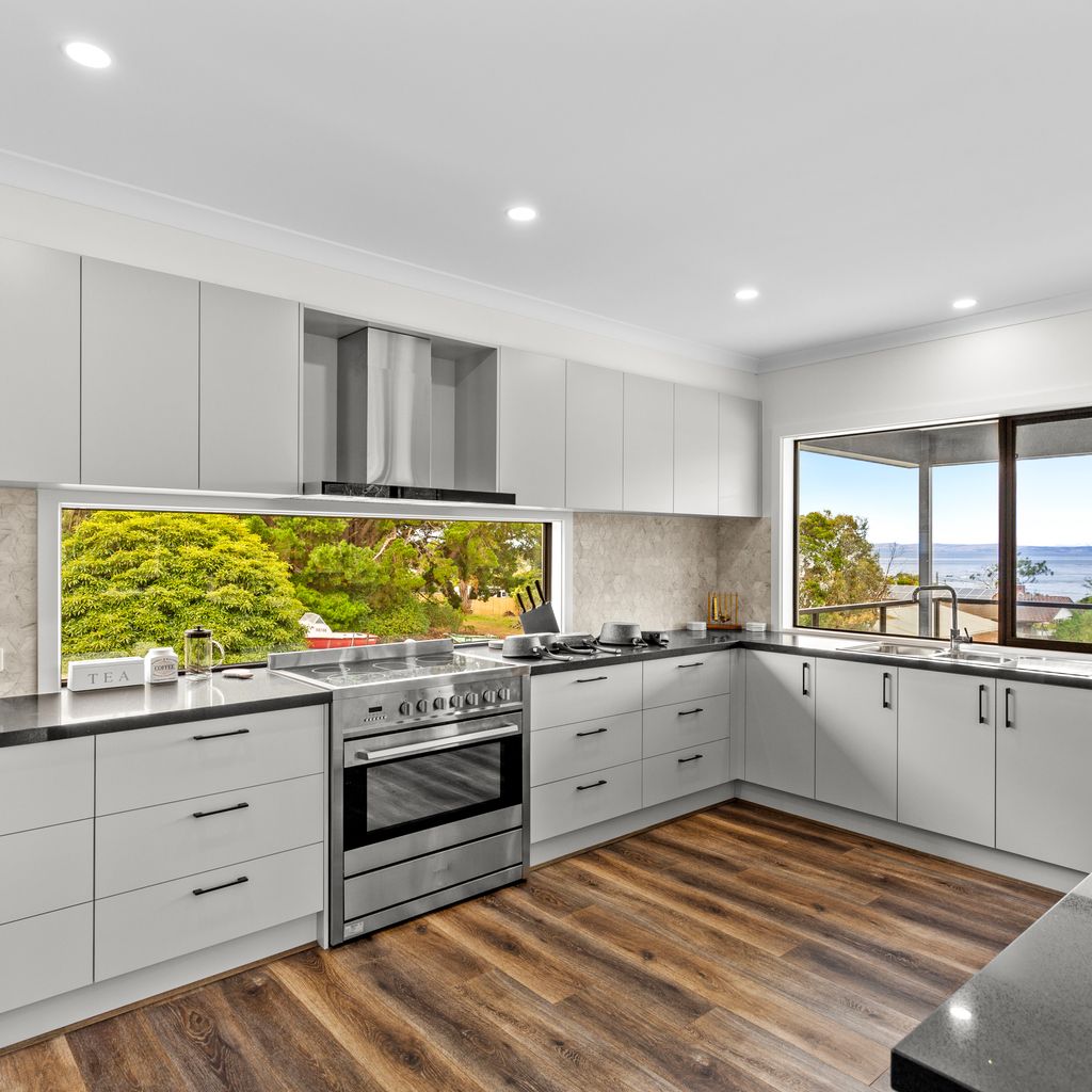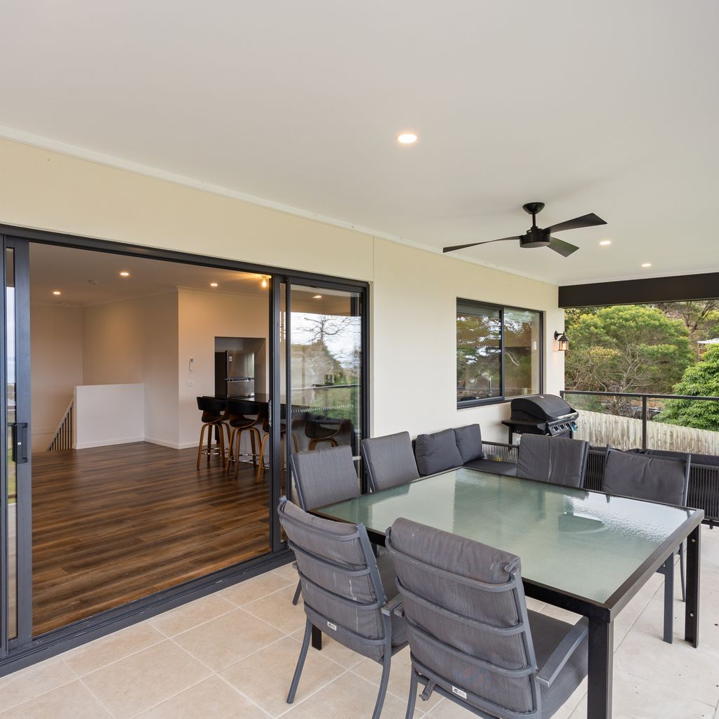 The fantastic covered upstairs front Verandah (with gas BBQ, table for 6 and two small outdoor lounges) has stunning water views over the Churchill Island Marine National Park. The downstairs Alfresco (with seating for 6) overlooks the yard, and there is a Double Garage (with table tennis table & internal access). Parking is available for up to 4 cars in the long, wide driveway.