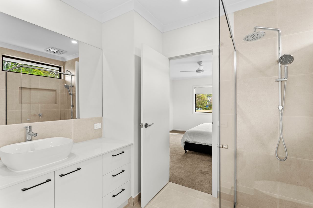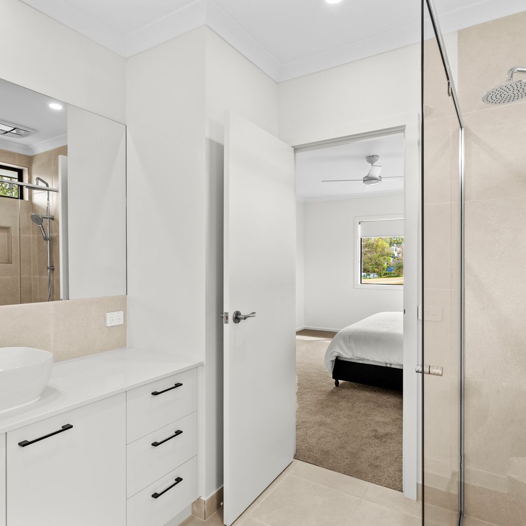 Upstairs is a large open plan Kitchen (with WIP)/Dining/Living Room (with 42" smart TV) that has delightful water views, and flows out to the covered Verandah. Also upstairs is Bedroom 1, which features a WIR and an ensuite (with shower & toilet) and Bedroom 2, which features a WIR and a dual entry ensuite (with shower & toilet).