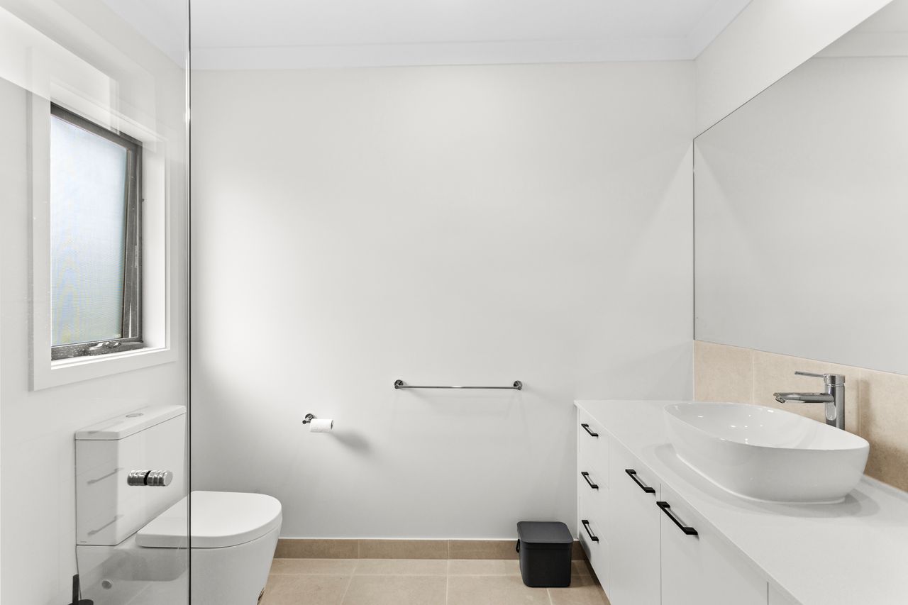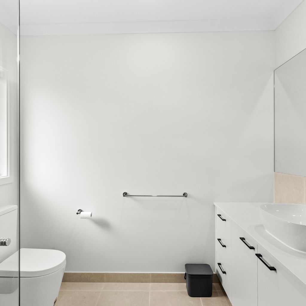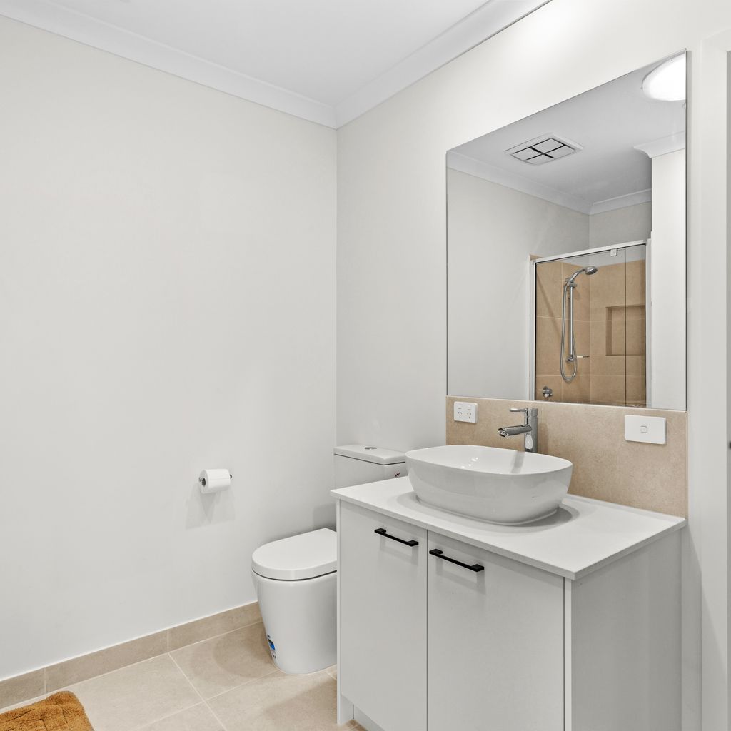 The downstairs Living Room (with a full sized fridge and selection of card & board games) flows out to the covered Ground Floor Alfresco, and has internal access to the Garage. A hallway leads to Bedrooms 3, 4 and 5 (each with BIR), a Bathroom (with shower & bath), a separate Toilet and a fully equipped Laundry (with washing machine & clothes dryer), which in turn leads to another Bathroom (with shower & toilet).