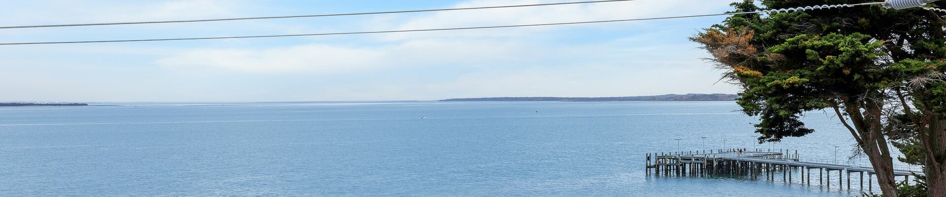The large semi-covered balcony (with 8-seater outdoor setting and gas BBQ) provides stunning 180 degree views over the Cowes beach. The apartment is one of 12 apartments that has access to the shared indoor swimming pool (6.5m x 2.7m, managed by 3rd party) and toilets/change rooms which are accessed via a central courtyard. There is one dedicated car space in the secure shared underground car park and the apartment is accessed via a lift from the car park or lobby (there are also stairs). There is also direct access from within the complex to the rear of the Thompson Road shopping precinct.