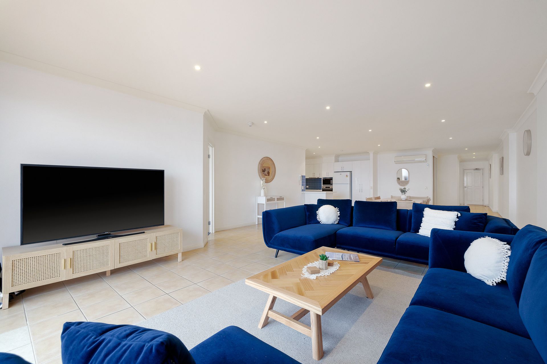This amazing residence is all on one level. A side hallway from the entrance leads to Bedrooms 2 and 3 (each with BIR), the Bathroom (with bath & shower), a separate toilet and the Laundry (with washing machine). The huge central open plan Kitchen/Living/Dining Room (with 65" smart TV) provides acces to the incredible water-facing Balcony, as well as Bedroom 1 which has a WIR and ensuite (with shower & toilet).