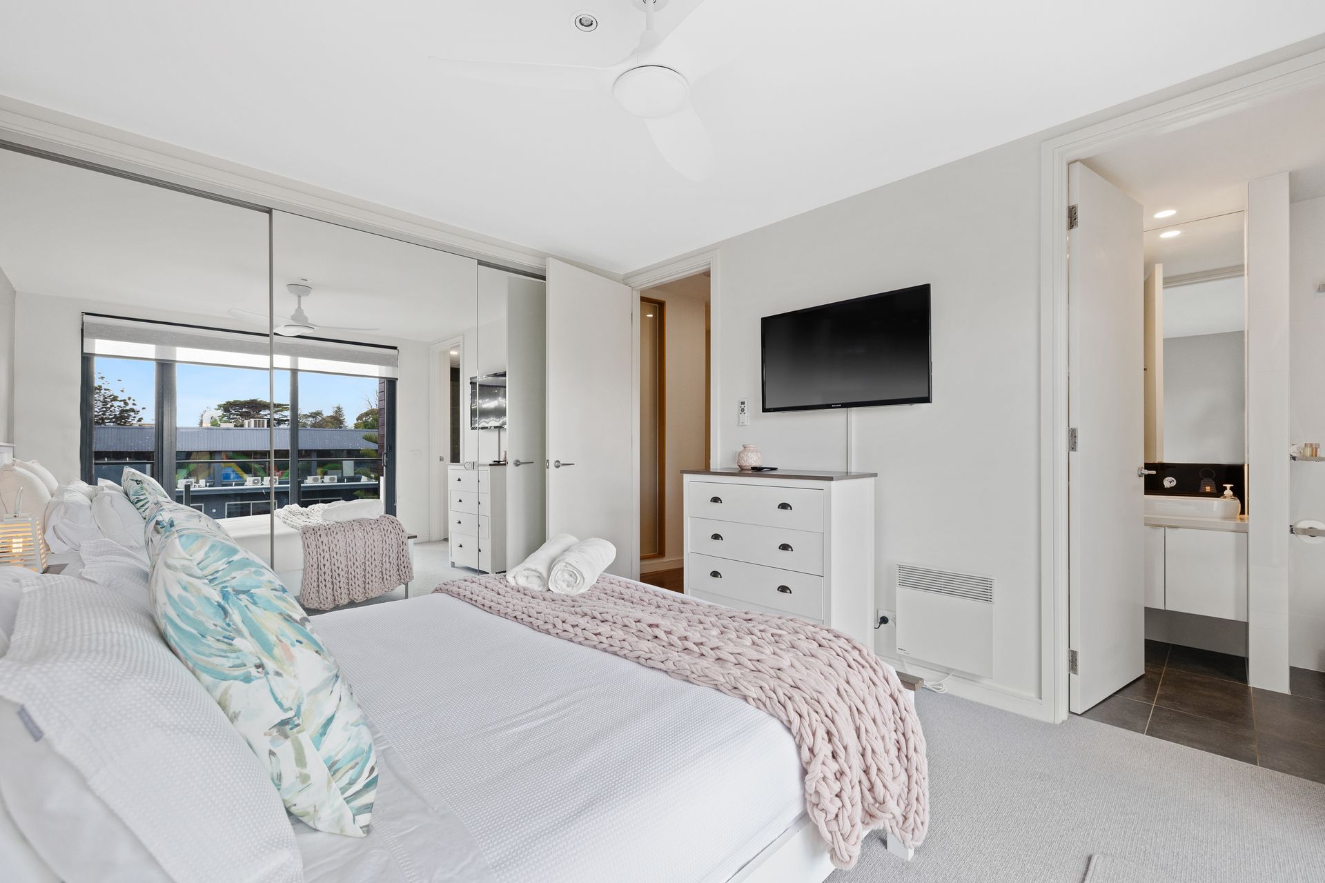 The generously sized semi-covered north facing Balcony (with electric BBQ, table & chairs for 8 plus a coffee table) has sensational 180 degree views across the Cowes beach, which is just metres from the Apartment (across The Esplanade). Erewon Park is 150m from the apartment with sweeping 180 degree water views and a fantastic playground (including swings, slides, climbing equipment, communal BBQ's with shelters), picnic area, outdoor showers, etc. There is an underground onsite parking garage with 2 car spaces available in tandem (or one space for long/large vehicles). Additional parking is available on the street.