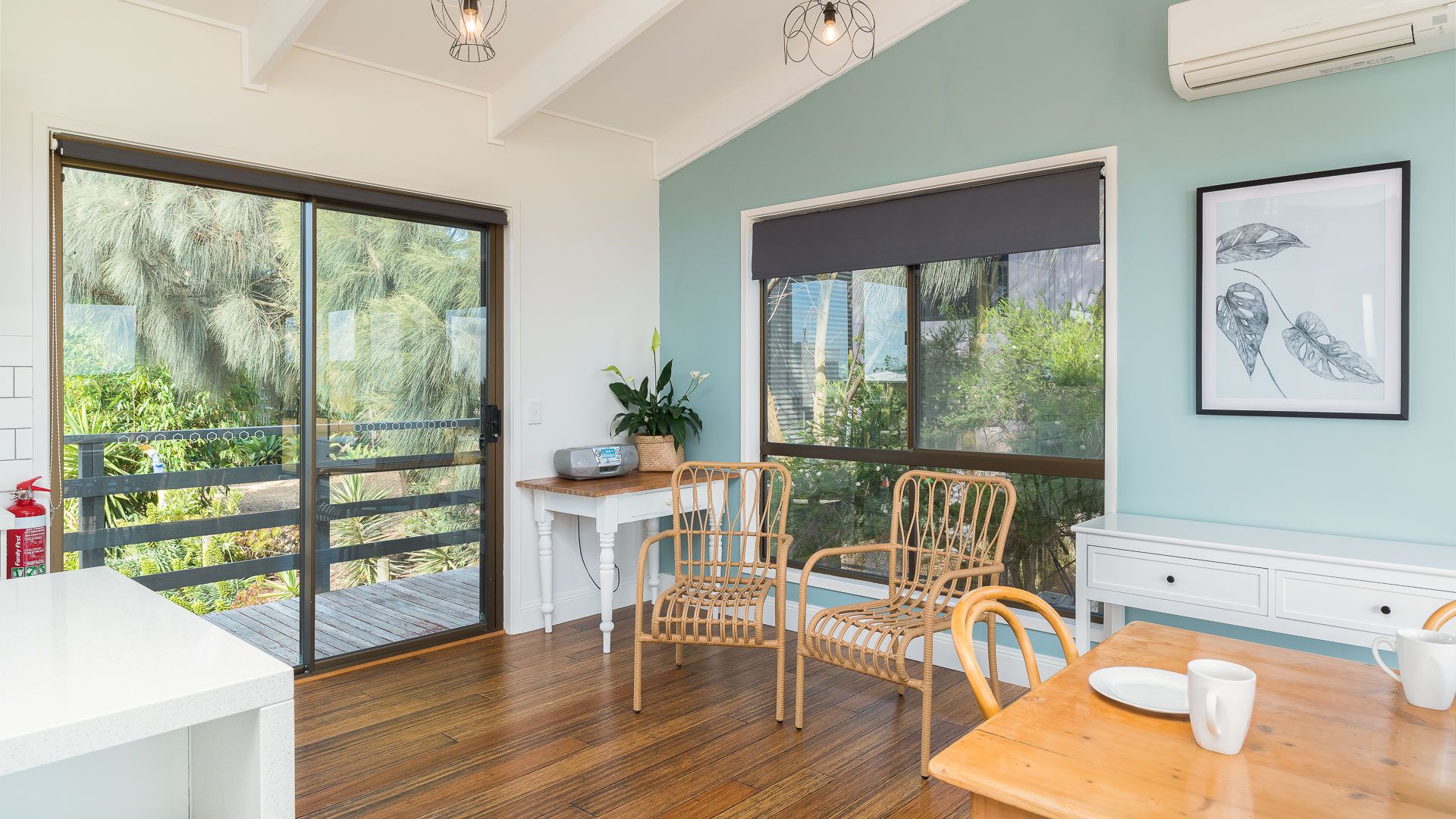 Heating and cooling are all taken care of with a wall-mounted reverse cycle A/C in the living area, plus one portable oil heater in each bedroom. There is also a ceiling fan in the living area upstairs, as well as one stand-alone fan in each bedroom.