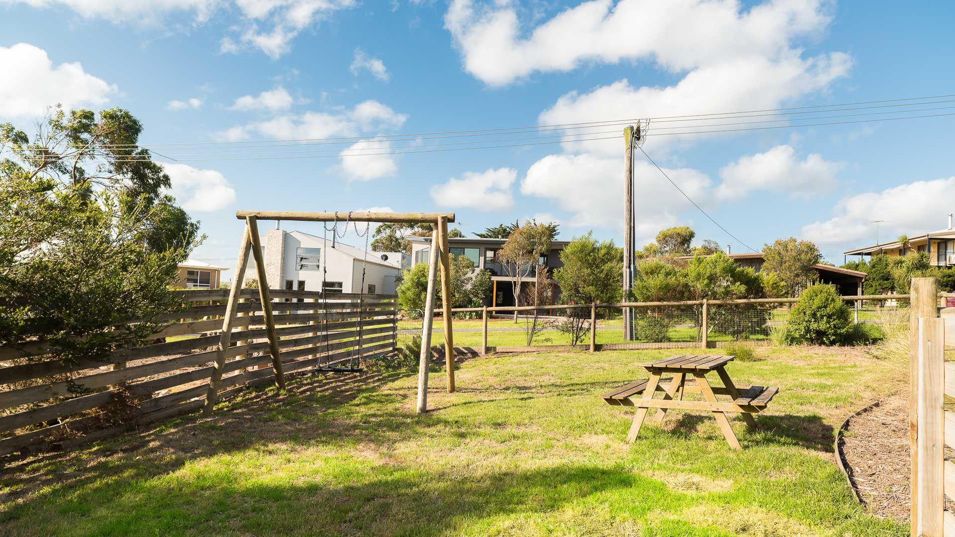 Both balconies upstairs offer outdoor sitting, suitable for having a cup of tea or coffee. The enclosed front and back yard are perfect for the kids, and there’s a swing for little ones in the side yard. There is a gas BBQ and outdoor seating downstairs plus a hot and cold outdoor shower. Ample parking is provided with off-street parking in the huge driveway for several vehicles, including a boat, and the Cowes boat ramp is within an easy 10-minute drive.