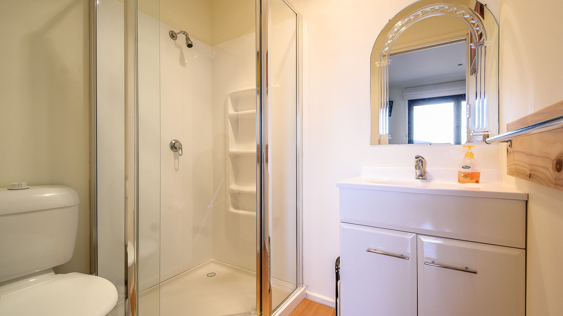 The master bedroom has its own TV and sparkling en-suite bathroom (shower, toilet and vanity unit). A further second bedroom and third bedroom (including full-sized cot with mattress) cater to the remainder of the family! The generous main bathroom, with a large spa-bath, and the laundry, with its washing machine and tumble dryer, round out the interior of this alluring holiday home.