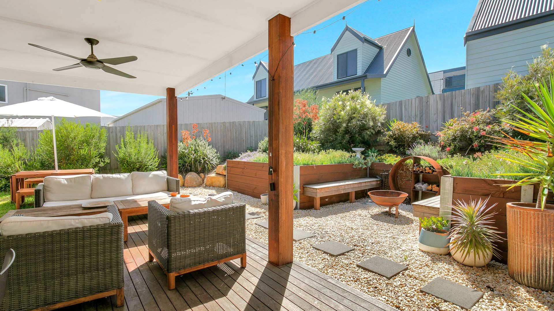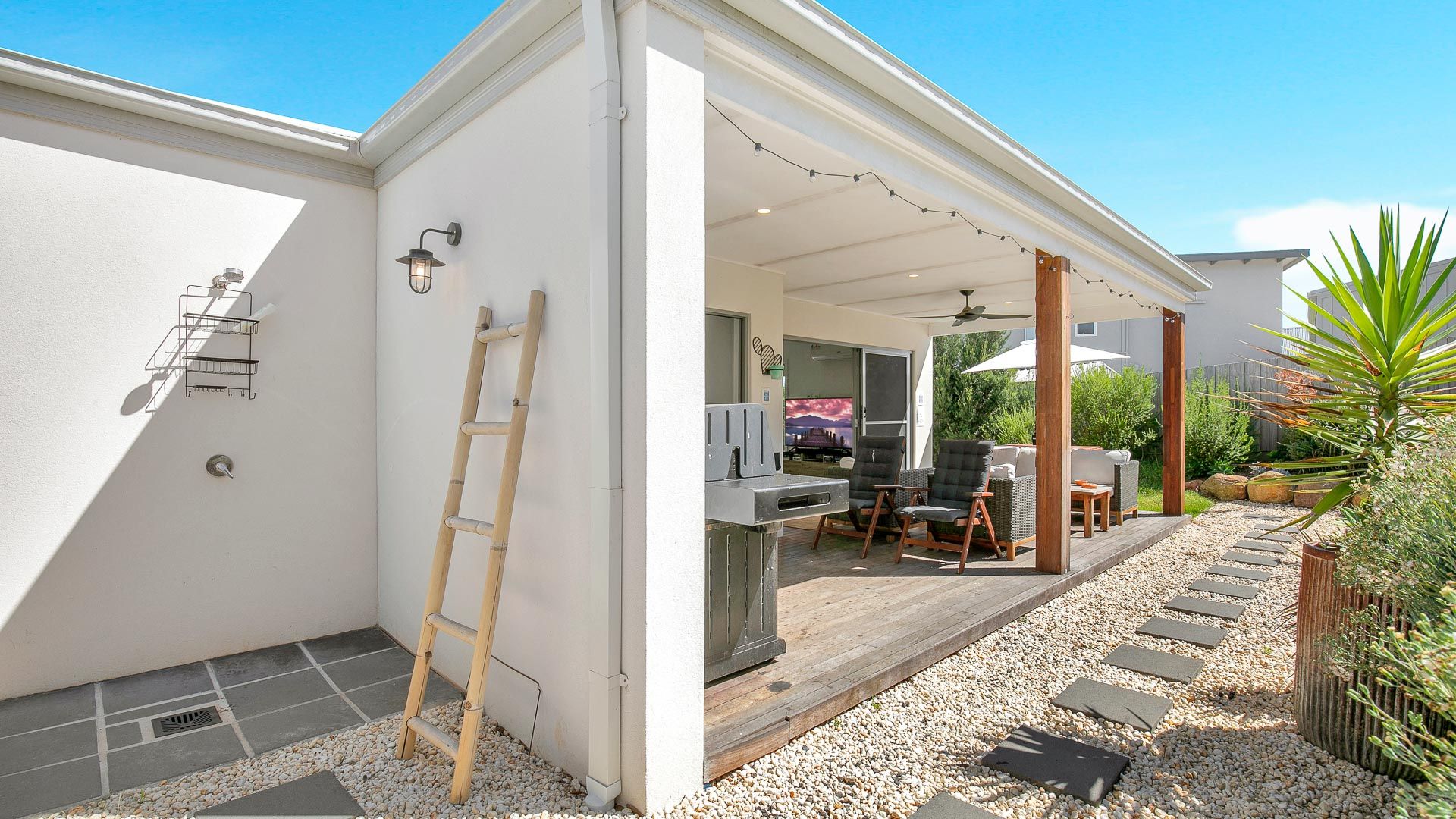 The covered Alfresco (with gas Weber BBQ, bar fridge, ceiling fan & seating for 10) also features a breakfast bar into the Kitchen, and is adjacent to a delighful firepit area with seating for 6 (firewood not provided). The fully enclosed rear yard is perfect for pets & children, and also features an outdoor hot/cold shower. There is is parking for 2 cars in the Double Garage plus space for another vehicle (car and/or a boat) in the driveway.