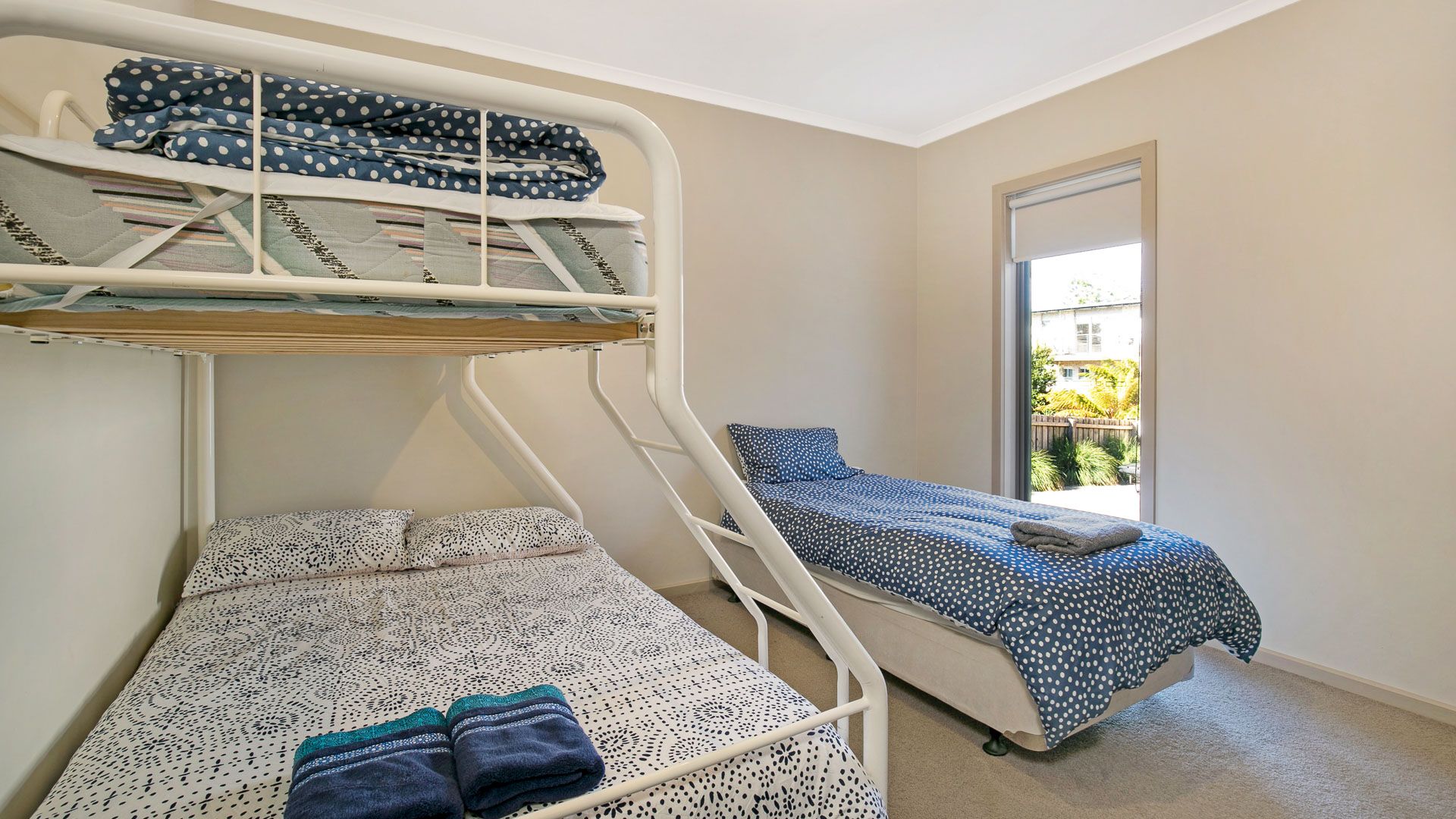 Bedroom 5 (downstairs): One Tri-bunk and one Single bed