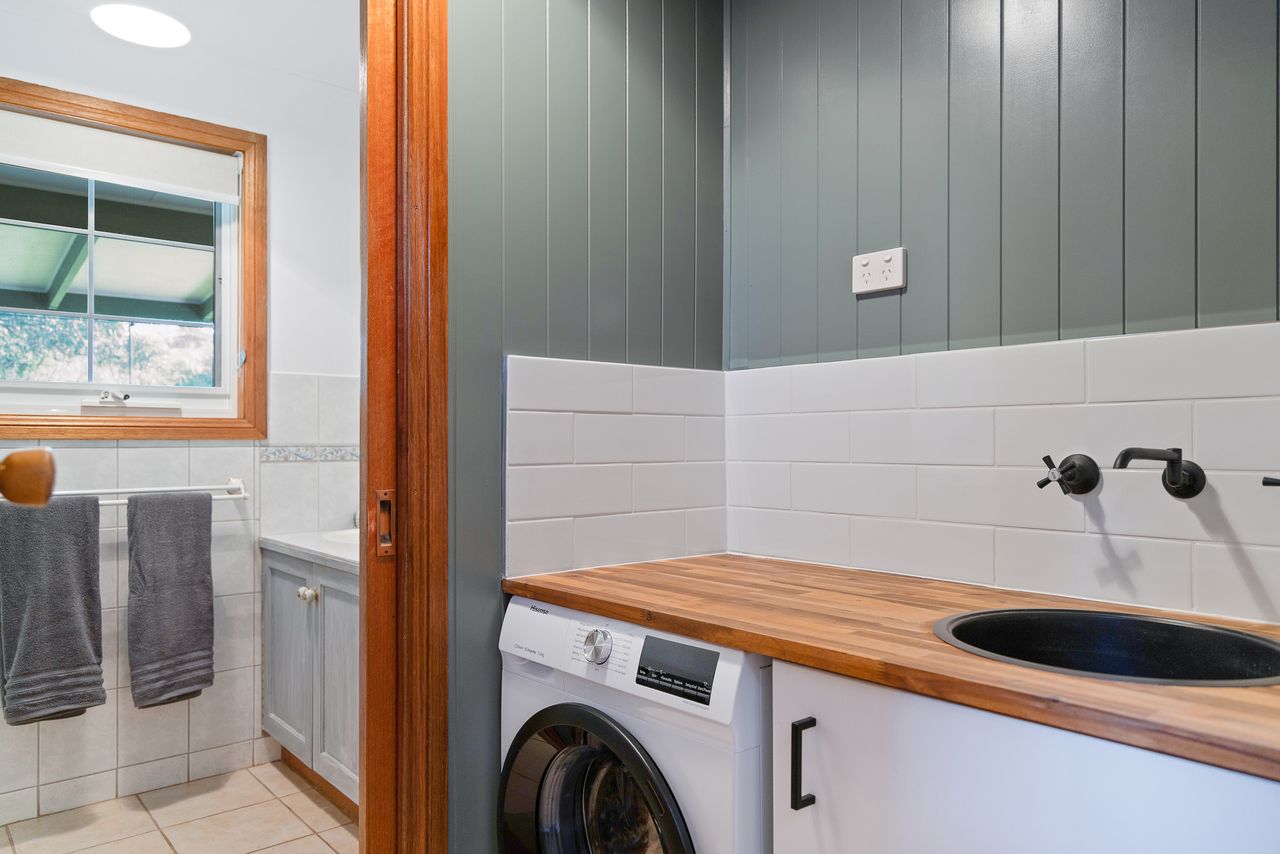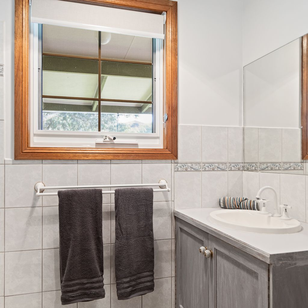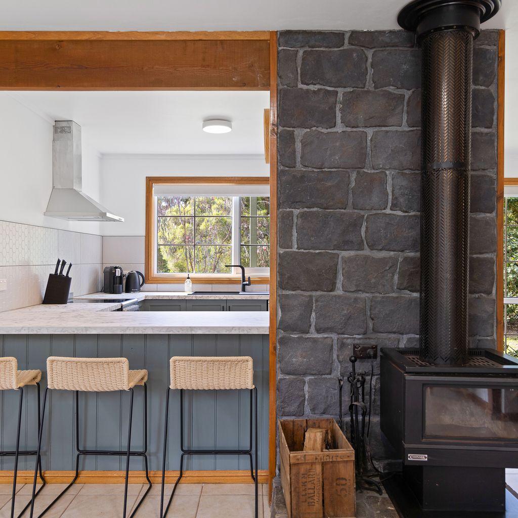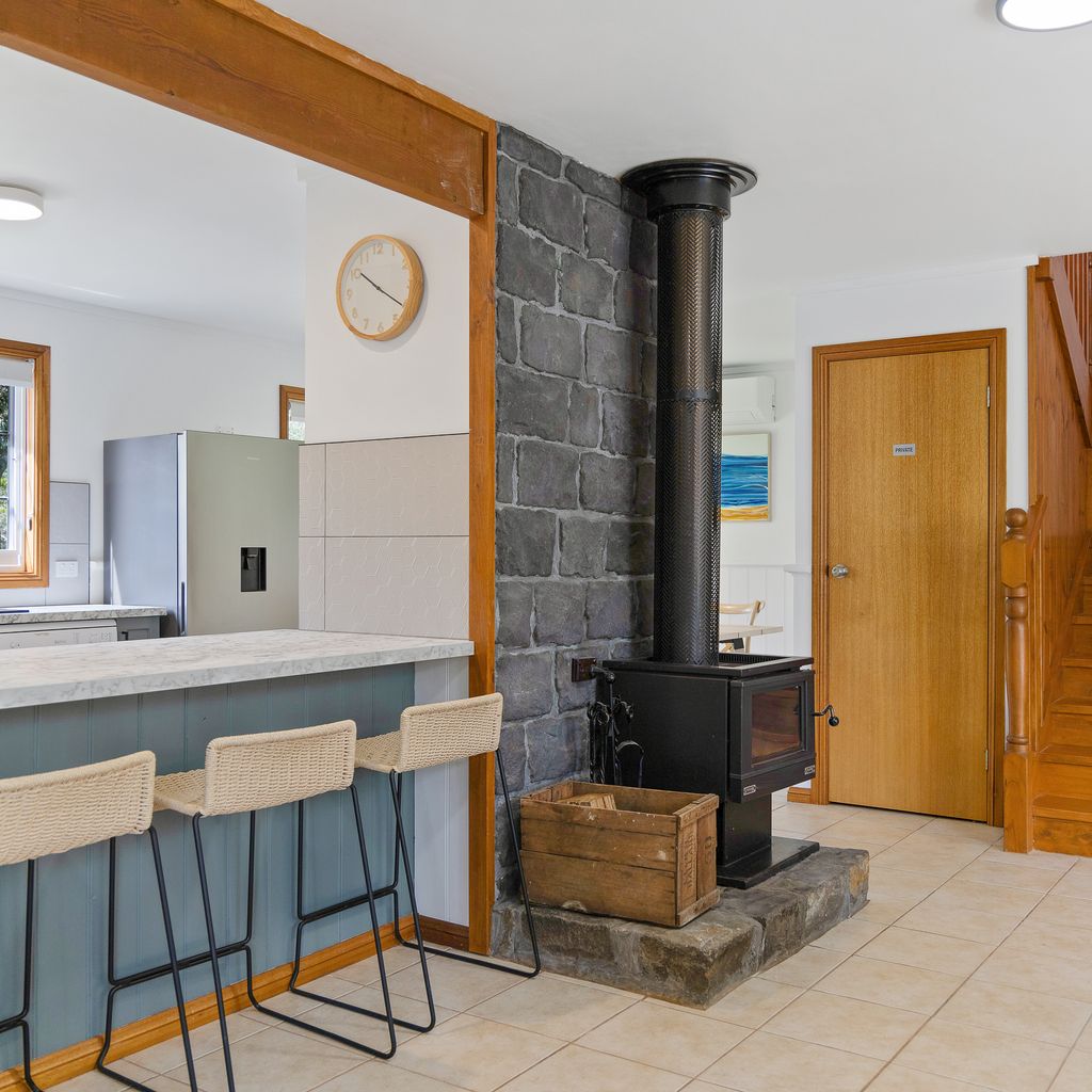 There is a wall mounted reverse cycle airconditioner in the downstairs Living/Kitchen/Dining room, ceiling fans in the Living Room and bedrooms 1 and 3, plus one additional stand-alone fan and two portable heaters which can be used where required. There is a Coonara-style wood heater in the Living Room (wood not provided).