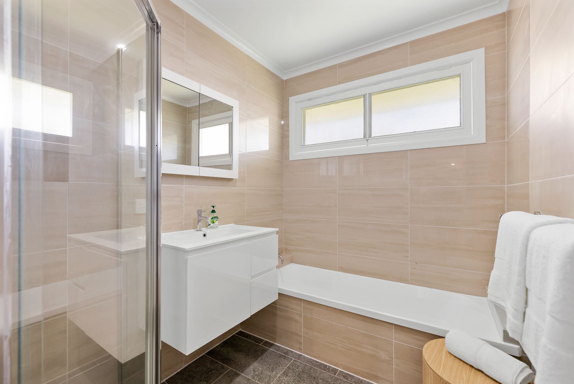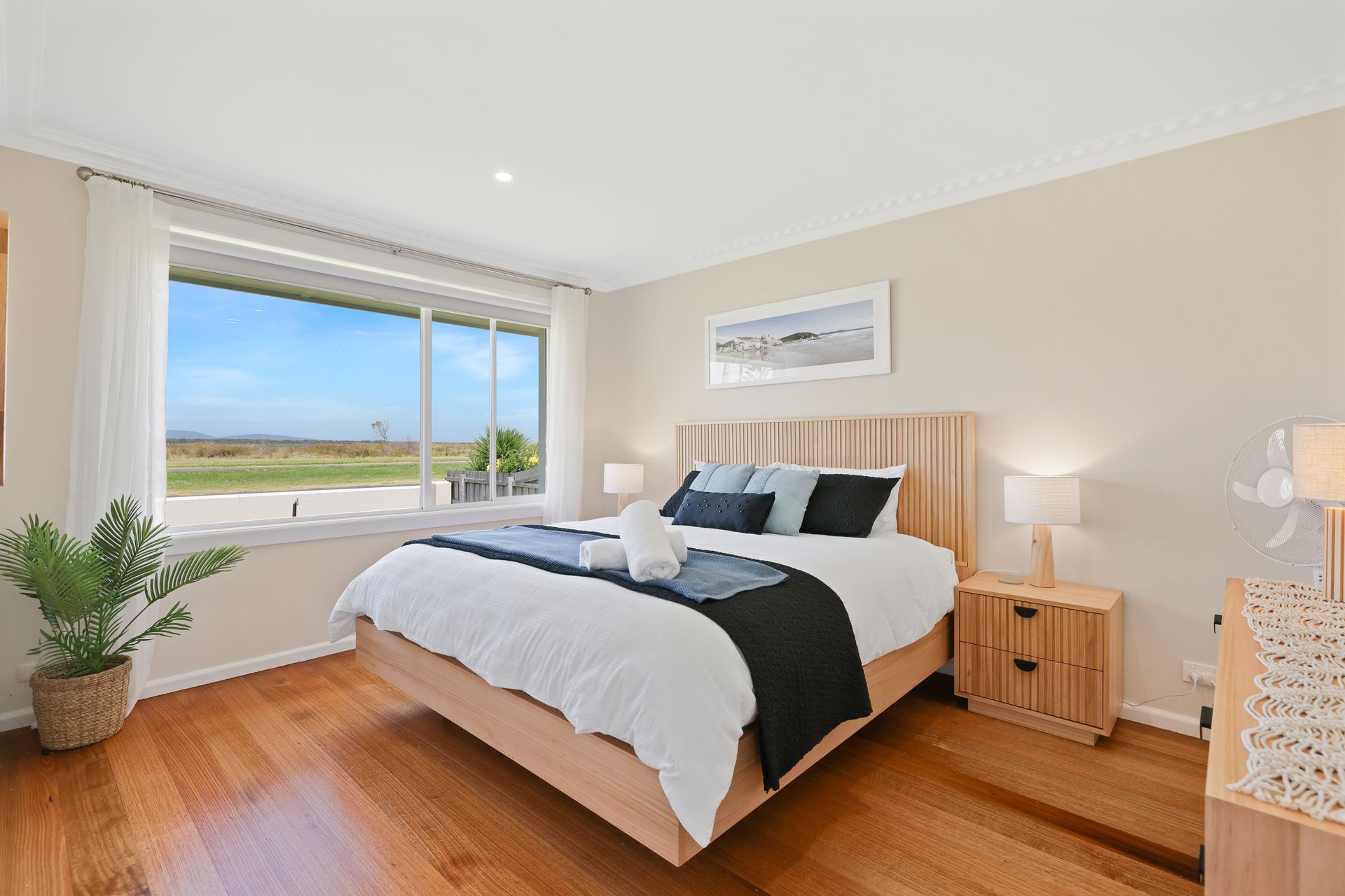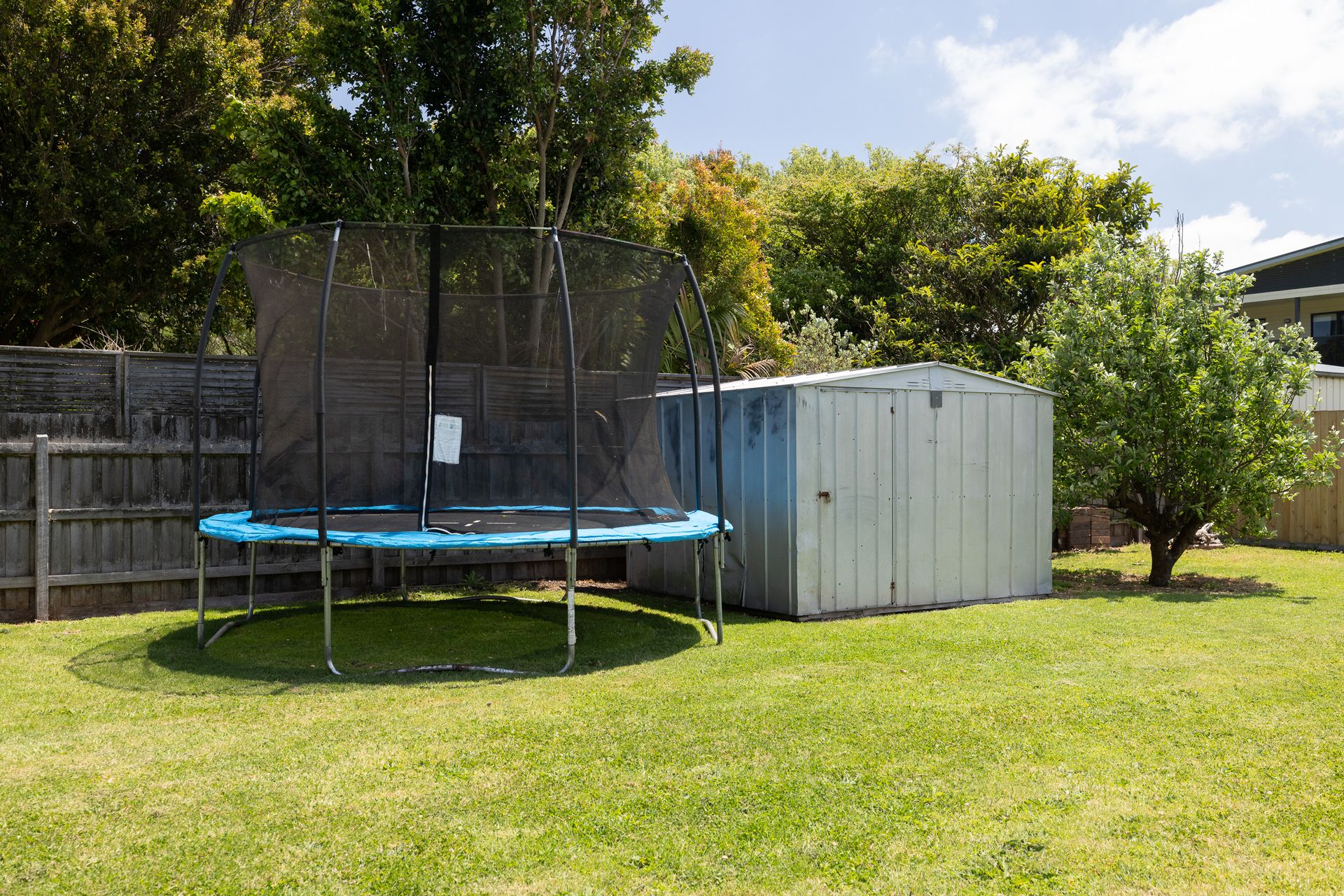 The covered rear Deck (with gas BBQ) overlooks the large fully enclosed rear yard. There is a rear shed (with table & chairs for 8 people). The whole block is enclosed, which is perfect for children, and features a trampoline and firepit (no wood provided). A short 120m walk from the home, and right on the beachfront, is the Lewis Street playground & recreation area, with undercover electric BBQ & seating, skate park, swings, slides and play equipment.