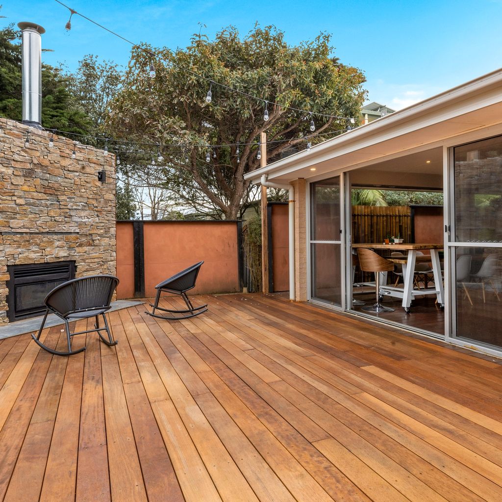 The covered alfresco area has 2 tables with seating for 6 (and convenient wheels to enable the entertaining to move outdoors). From the Alfresco, step out onto the brand new deck with external fireplace, Oklahoma Joe BBQ smoker (charcoal and gas) and the amazing 6-seater electric heated spa. This is the ideal space overlooking the fully enclosed rear yard, which is perfect for kids and features a hot & cold water outdoor shower. There is parking for two cars in the large double garage (with internal access into the home plus a table tennis table) and parking in the driveway for another two cars.