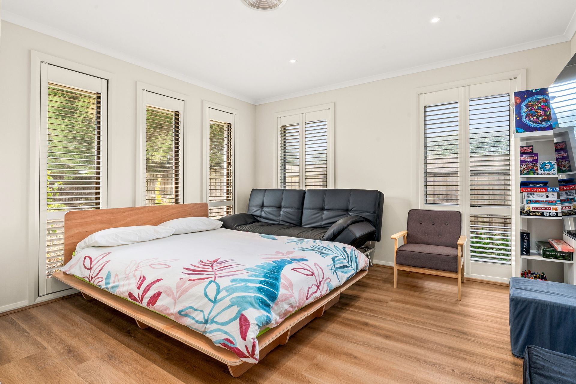The large open plan kitchen/dining/living room (with coonara, 85' smart TV with Sonos sound bar & Harman/Kardon speaker) is the perfect place to spend time together and provides access to the enclosed sunroom and Alfresco which are delightful indoor/outdoor spaces. The main bedroom at the rear of the home is accessed via a hallway off the living room and has a WIR and ensuite (with shower & toilet) as well as a 65' smart TV, work desk, a USB-C connector that acts as charger and connector to accessories, mouse, professional microphone, high definition camera and 34’’ wide monitor that can be used for working from home. Also off the side hall are Bedrooms 2 & 3 (each with BIR), a laundry and the main bathroom (with bath & shower) and a separate toilet. The front family room is being used as a 4th bedroom (with 85' smart TV with Sonos sound bar) and there is internal access to the double garage.