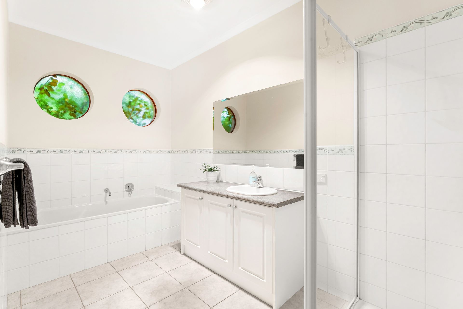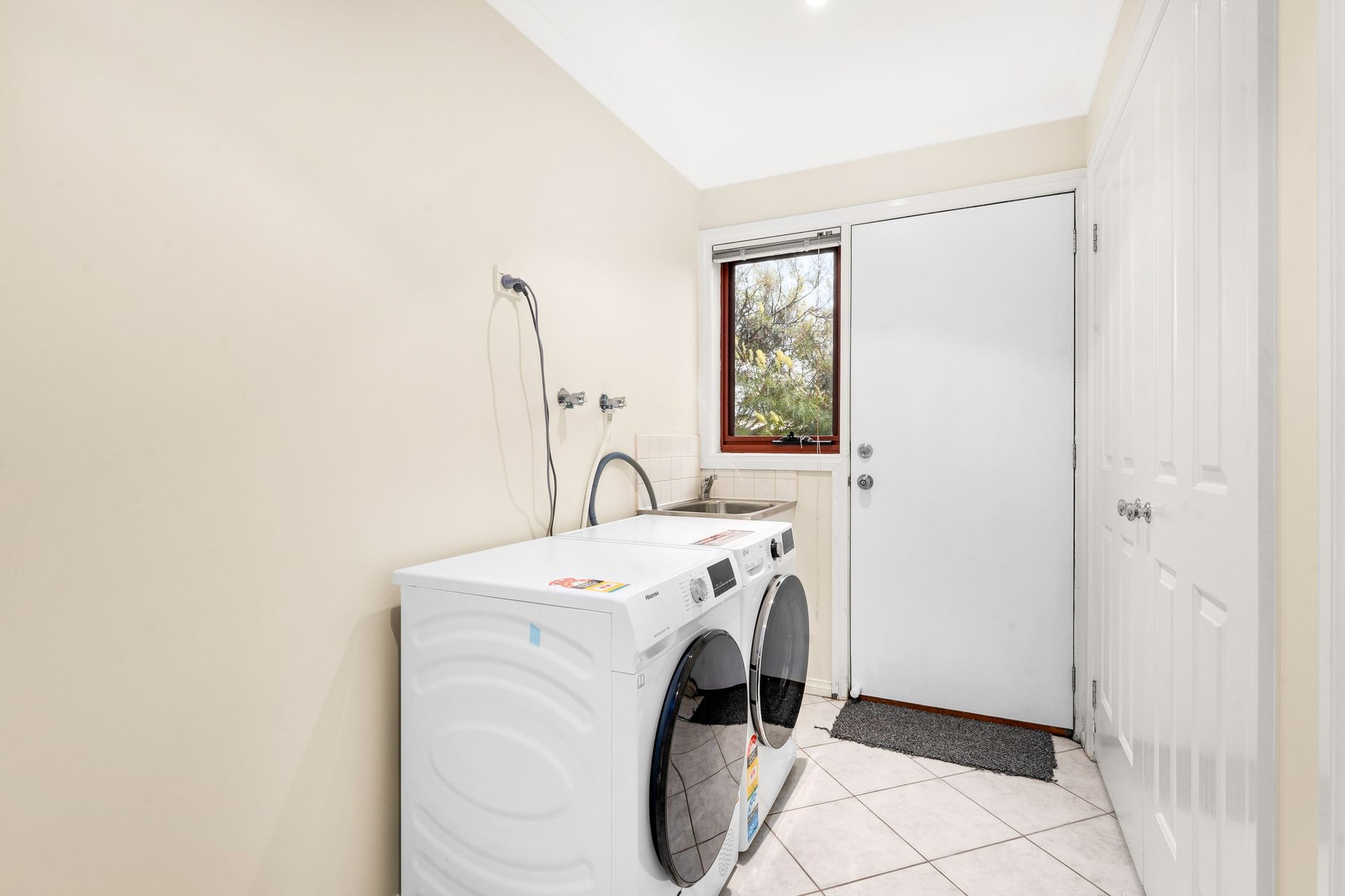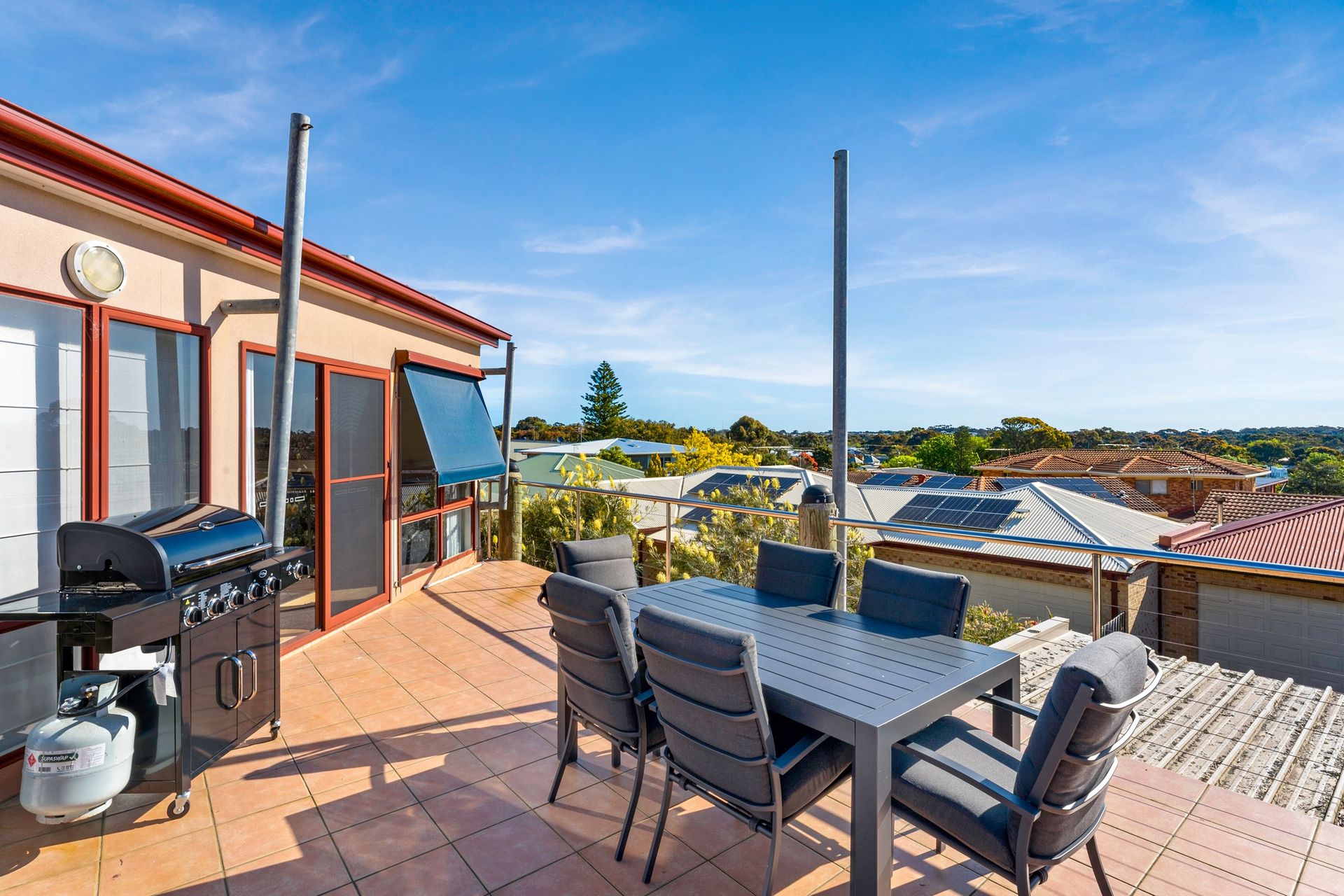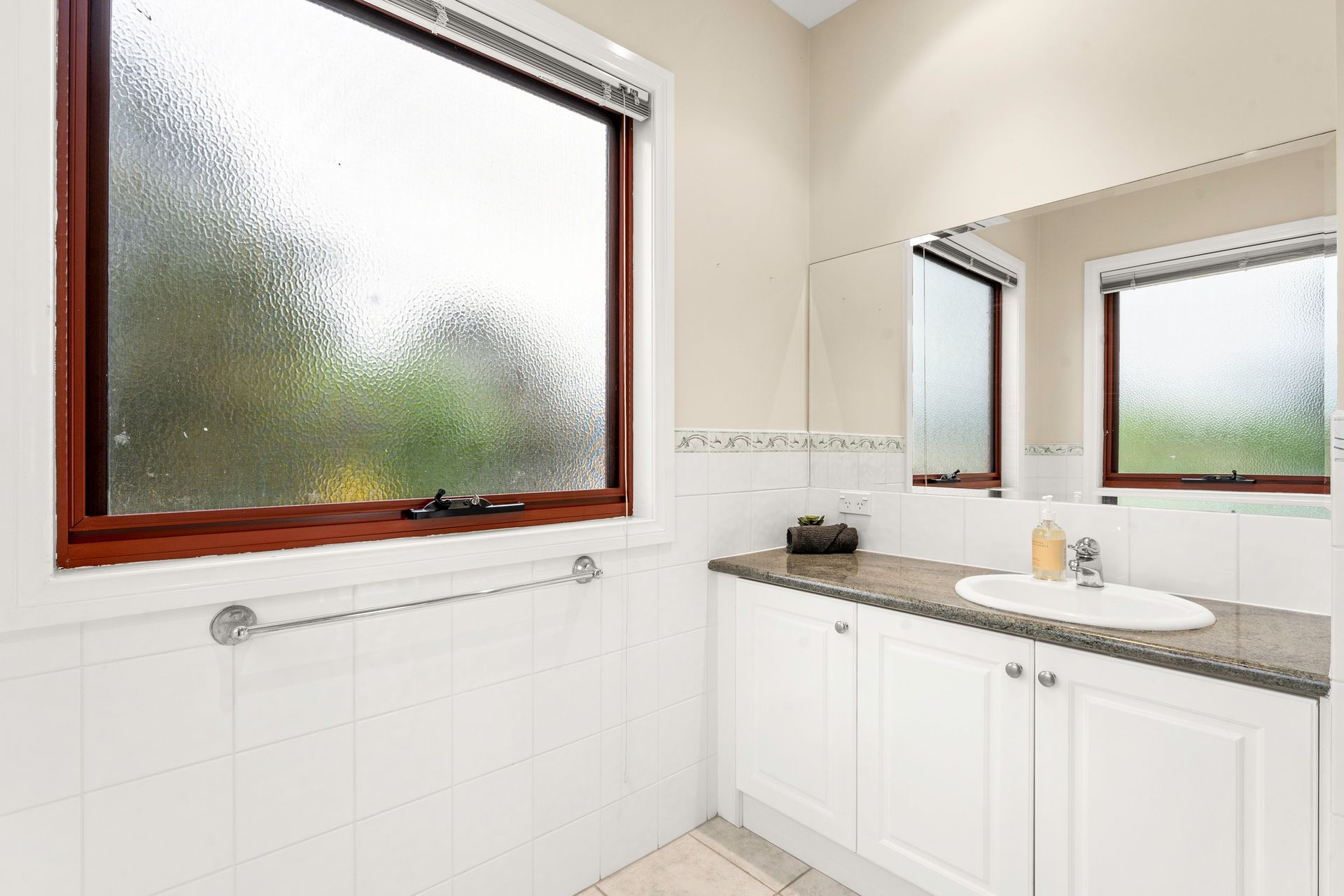The rear courtyard is fully enclosed, providing the perfect place for kids to play. The upstairs balcony (with gas BBQ & 6-seater outdoor dining table) has delightful bay views. The long single garage (7.5m long, with direct access to the rear yard) provides parking for one car with space for another vehicle in front of the Garage.