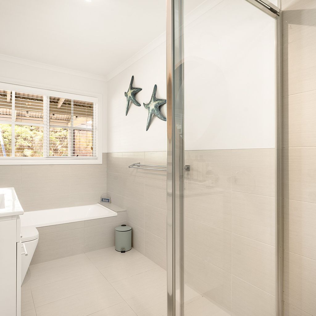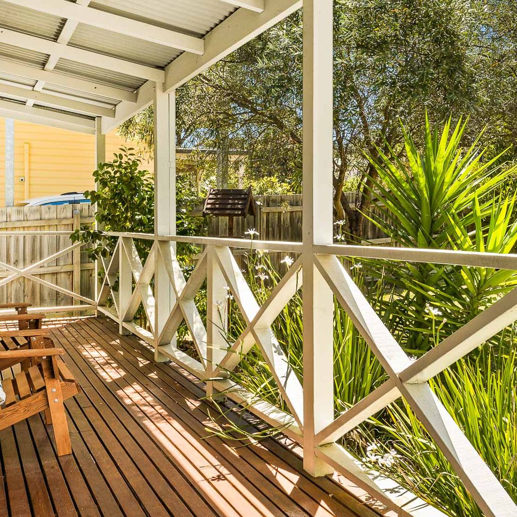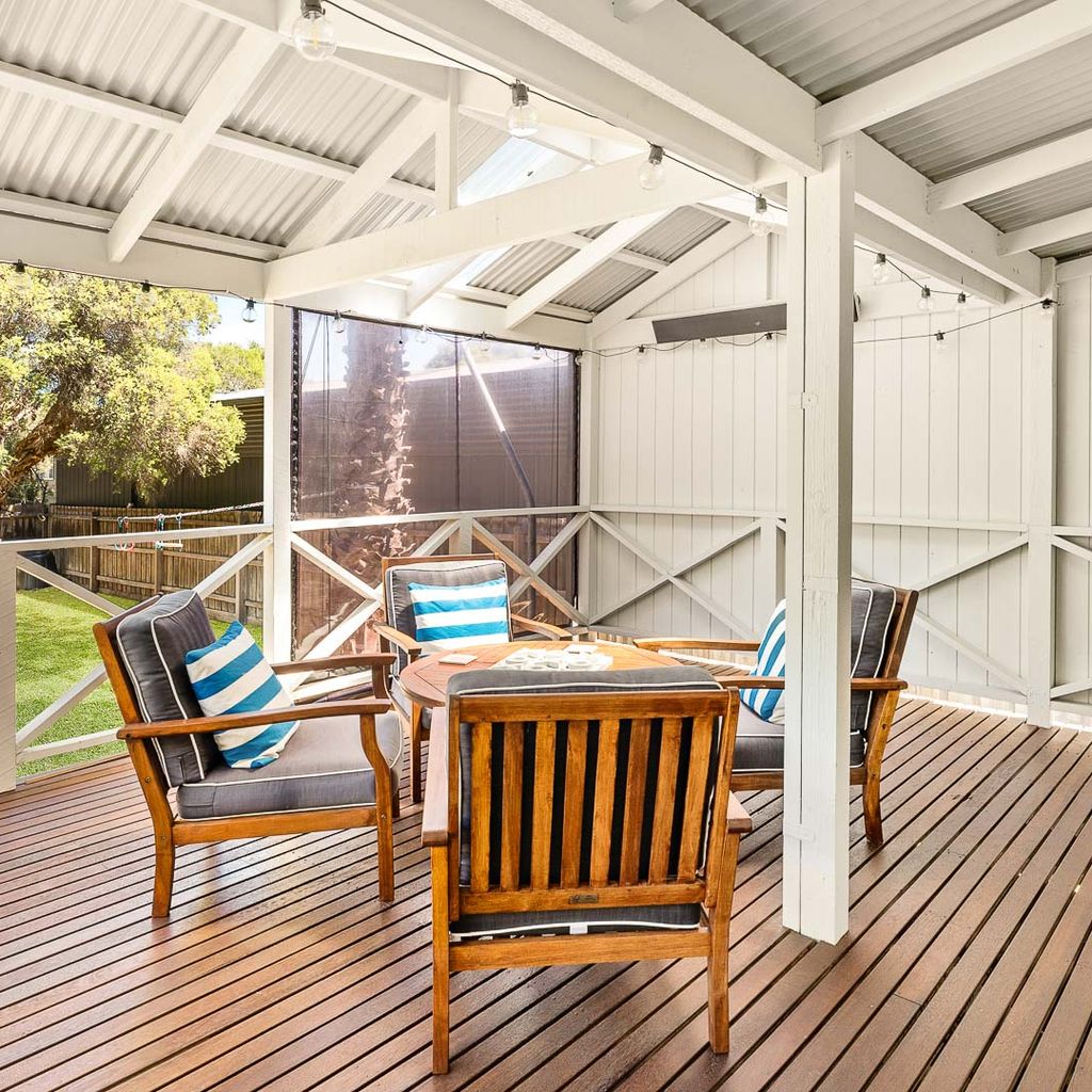 The covered rear alfresco (with BBQ and outdoor setting) is perfect to entertain the family, the fully enclosed large rear yard is great for kids and pets and has a hot & cold outdoor shower available up the side of the house opposite to the driveway (accessible only from the backyard) to rinse off after the beach. The front covered deck runs the length of the home.