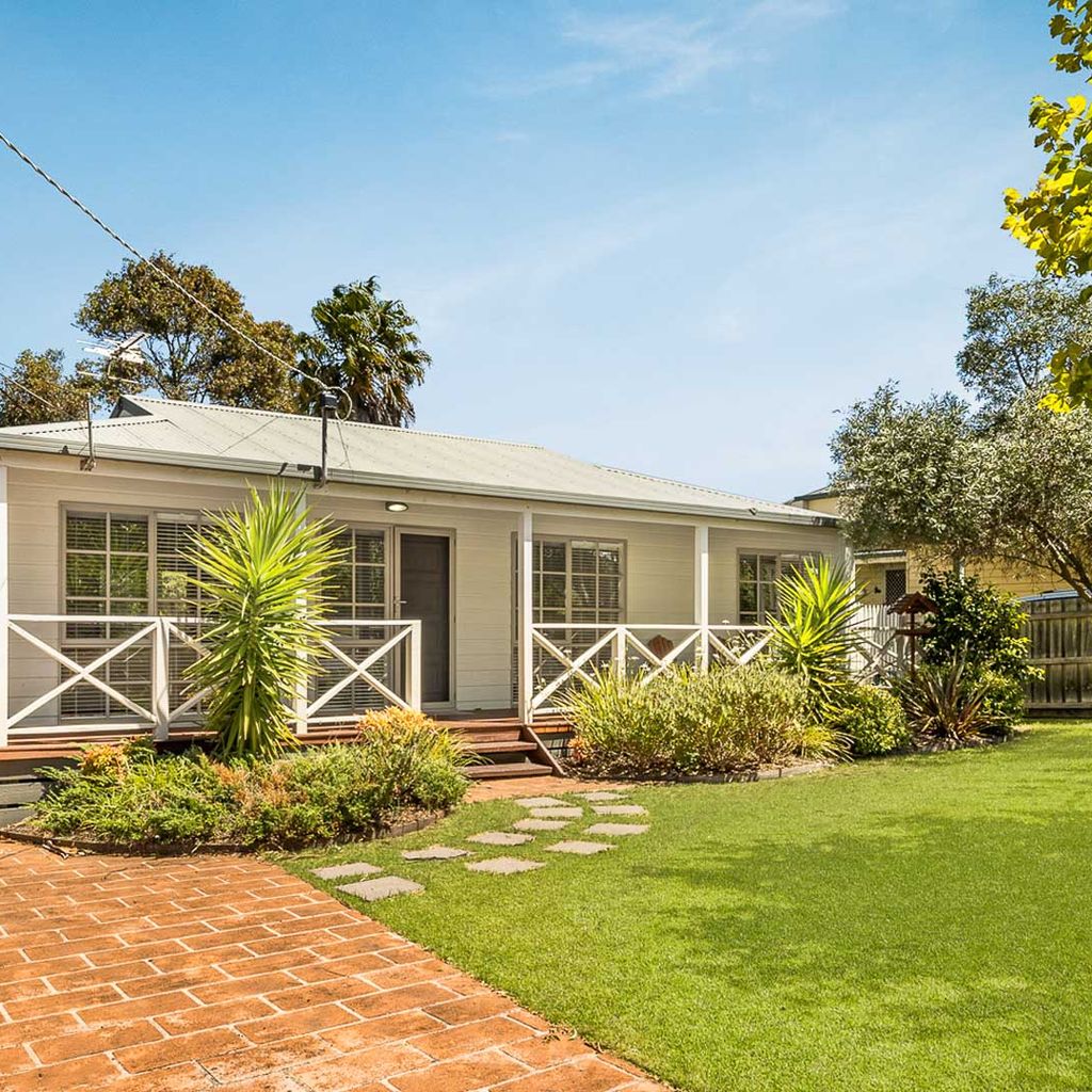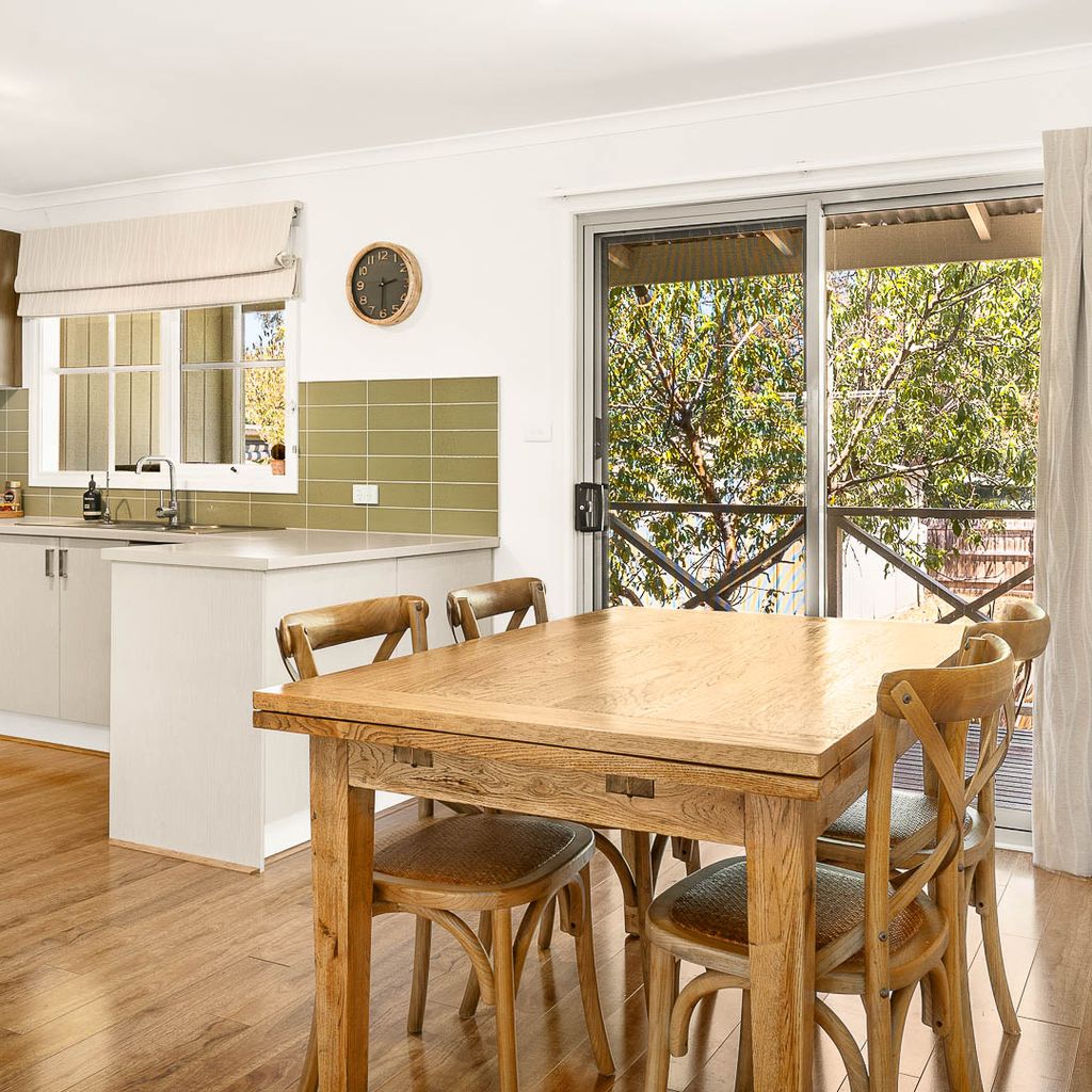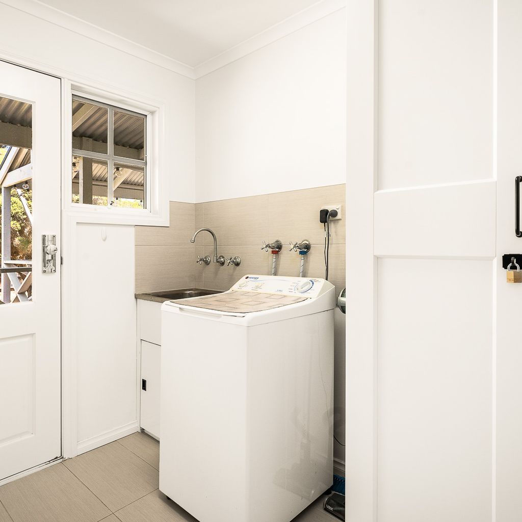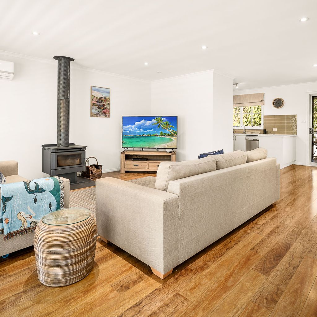 The open plan Kitchen/Dining/Living room (with coonara wood heater, large screen smart TV) provides access to the rear deck and yard. The central hallway leads from the Living room to the fully equipped Laundry (with washing machine & clothes dryer), central Bathroom (with bath, shower and toilet) and a second separate toilet. All three Bedrooms have BIR.