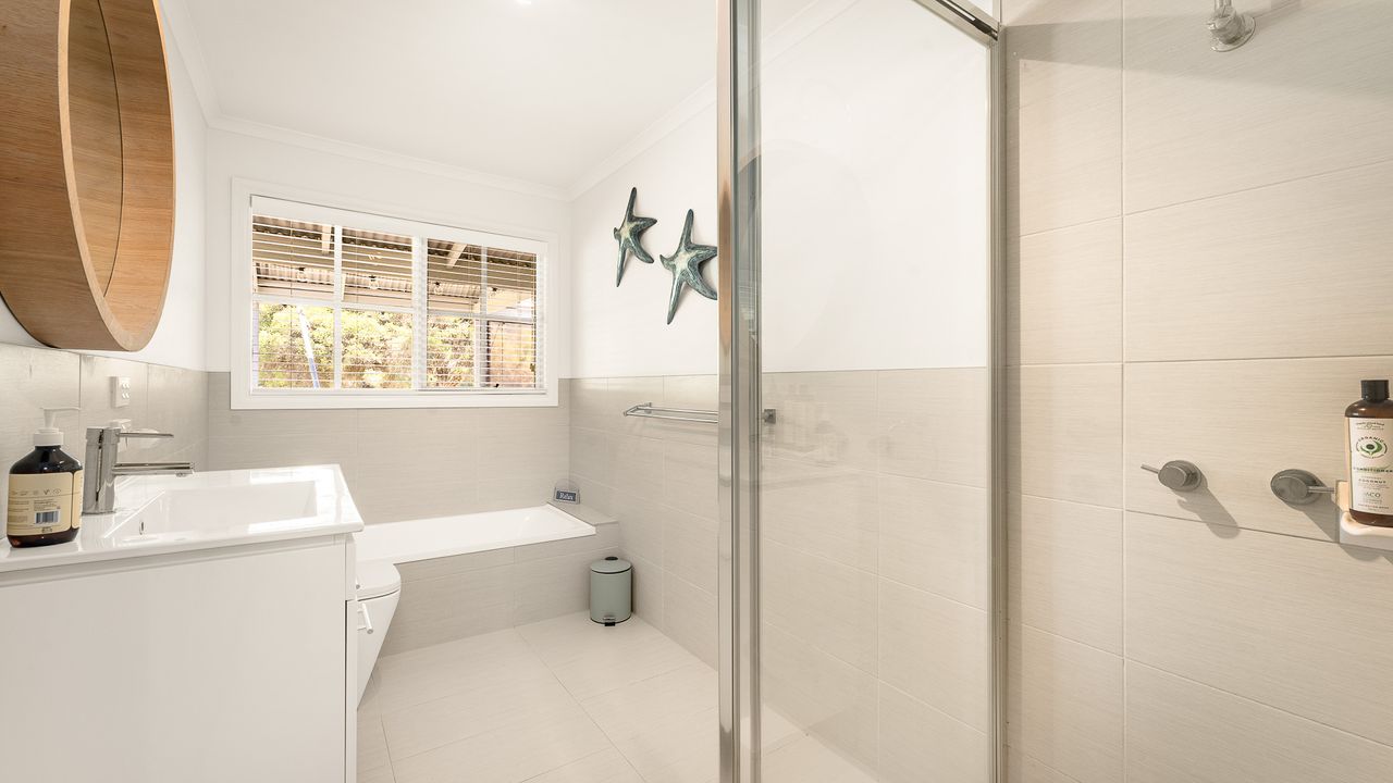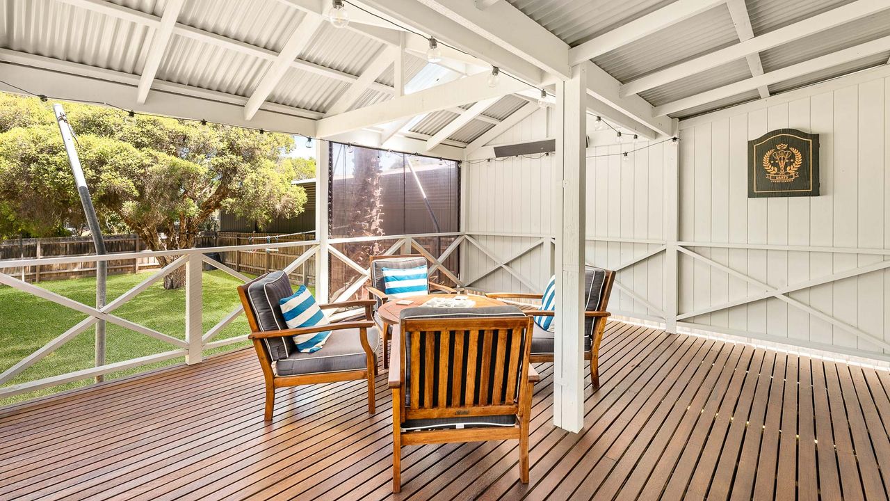 The covered rear alfresco (with BBQ and outdoor setting) is perfect to entertain the family, the fully enclosed large rear yard is great for kids and pets and has a hot & cold outdoor shower available up the side of the house opposite to the driveway (accessible only from the backyard) to rinse off after the beach. The front covered deck runs the length of the home.