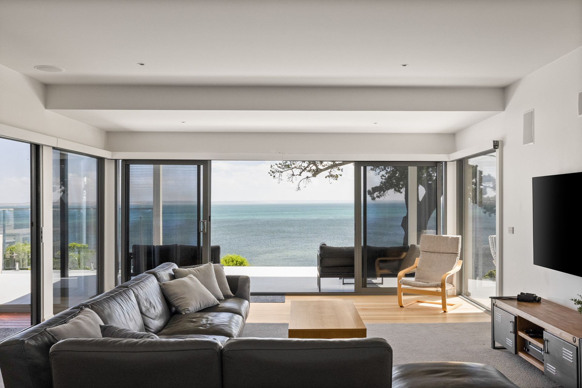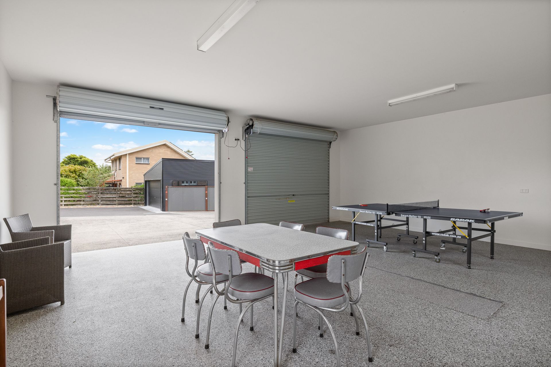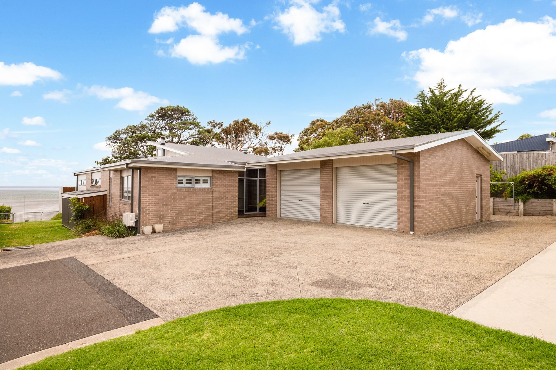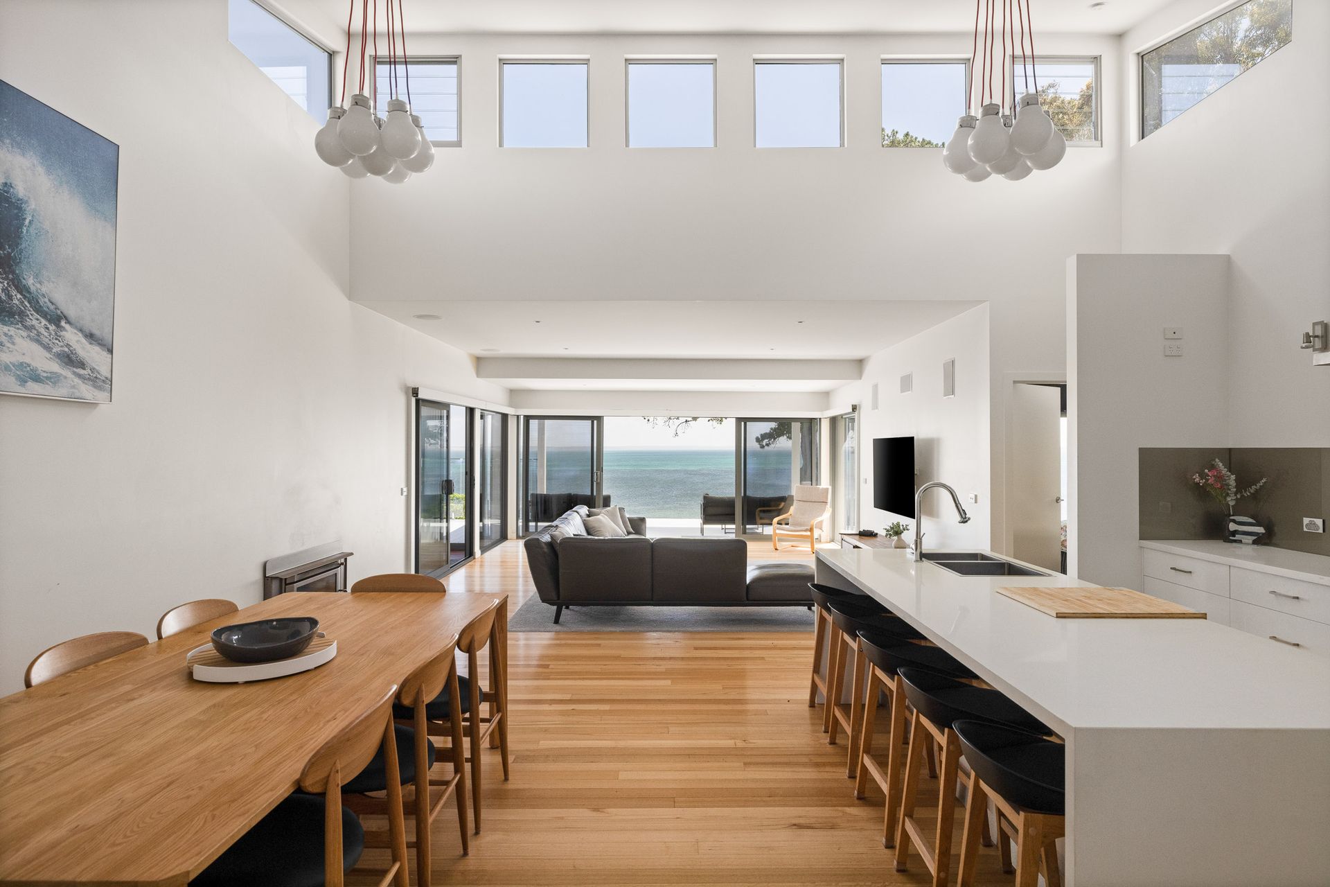 The large semi-covered Deck has incredible water views looking over French Island National Park. The double Garage (with table tennis table and couches) Is not for parking, however there is space for 3 vehicles (cars and/or a boat) in front of the Garage in the driveway. The closest swimming beach is a four minute drive away.