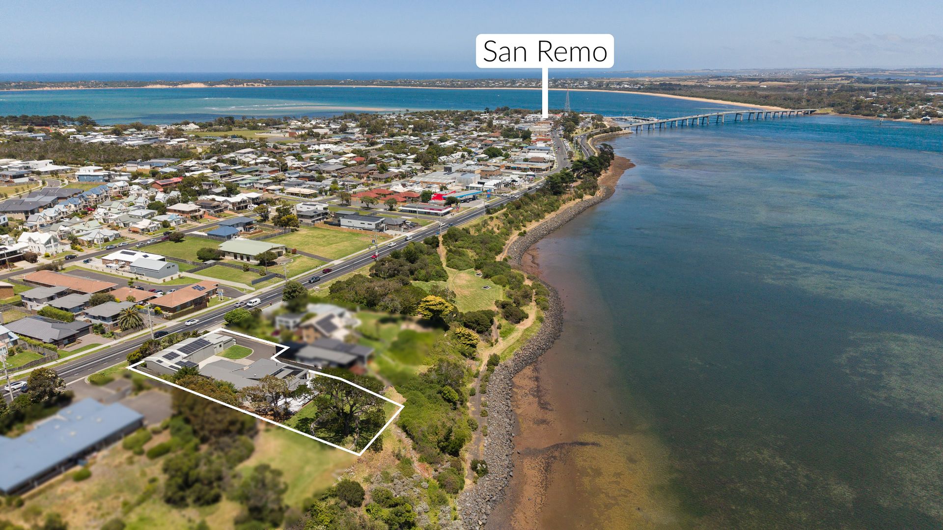 “Cliff Top Retreat” is a delightful single-storey family home in San Remo with absolute 180-degree water views, just meters from the water and close to the supermarkets, restaurants & cafés of San Remo. Some of the many features of this lovely home are detailed below: