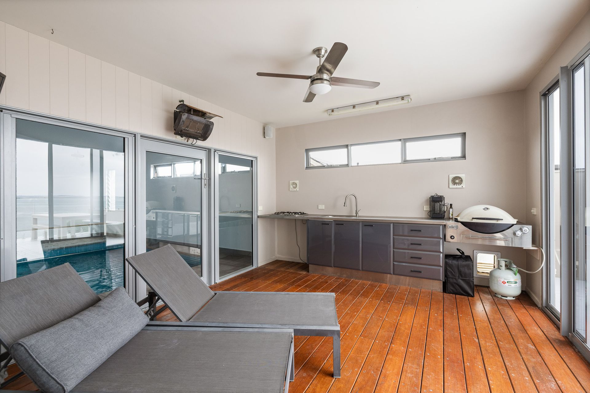 The huge open plan Kitchen/Living/Dining area (with 65" smart TV, sound system and a selection of board and card games) has spectacular water views and leads to the indoor BBQ area (with gas BBQ, outdoor dining for 6-8 people and two sun lounges) featuring an amazing inground solar heated swimming pool (2.5 x 4.5m). Also leading from this area is Bedroom 1 which has a WIR, TV and ensuite (with bath, shower and separate toilet). A Hallway provides access to Bedroom 2 & 3 (each with BIR), a Bathroom (with shower and a separate toilet) and a Laundry (with washing machine).