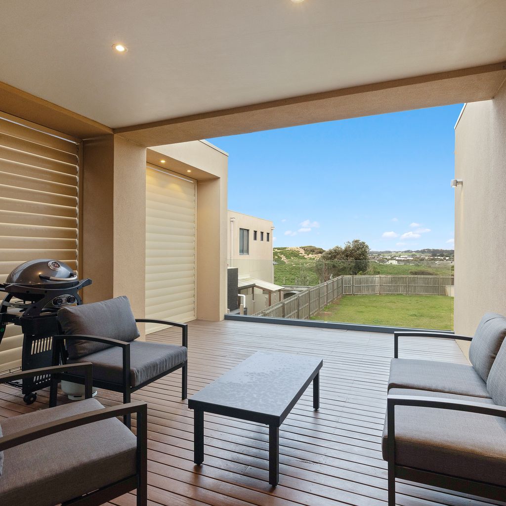 The upstairs covered front Deck (with seating for 6 people and room for more) is ideal for entertaining. In one direction it provides uninterrupted ocean views across the waves of Surf Beach and up to the Pinnacles at Cape Woolamai. In the other direction the deck faces the glistening light of Swan Bay and the rolling green hills of San Remo, providing the perfect place to watch the sun come up.