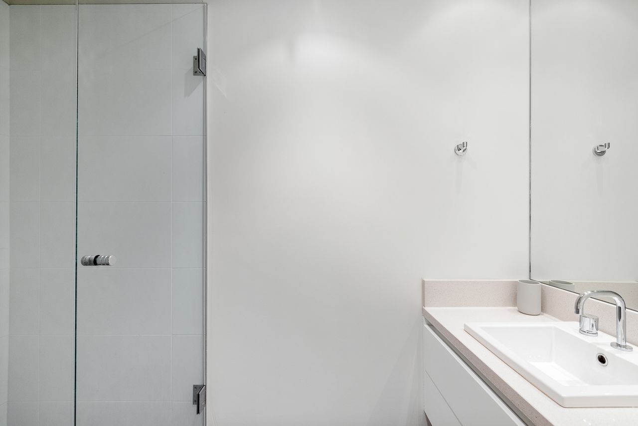 The fully appointed kitchen is equipped with cooking utensils, crockery, cutlery, microwave, toaster, kettle, etc. plus a double sink, fridge, dishwasher, electric oven and cook top. The Miele inbuilt coffee machine is difficult to use and so a Nespresso pod coffee machine with a range of Melbourne coffee roasts (and Starbucks) is available for guests instead.
