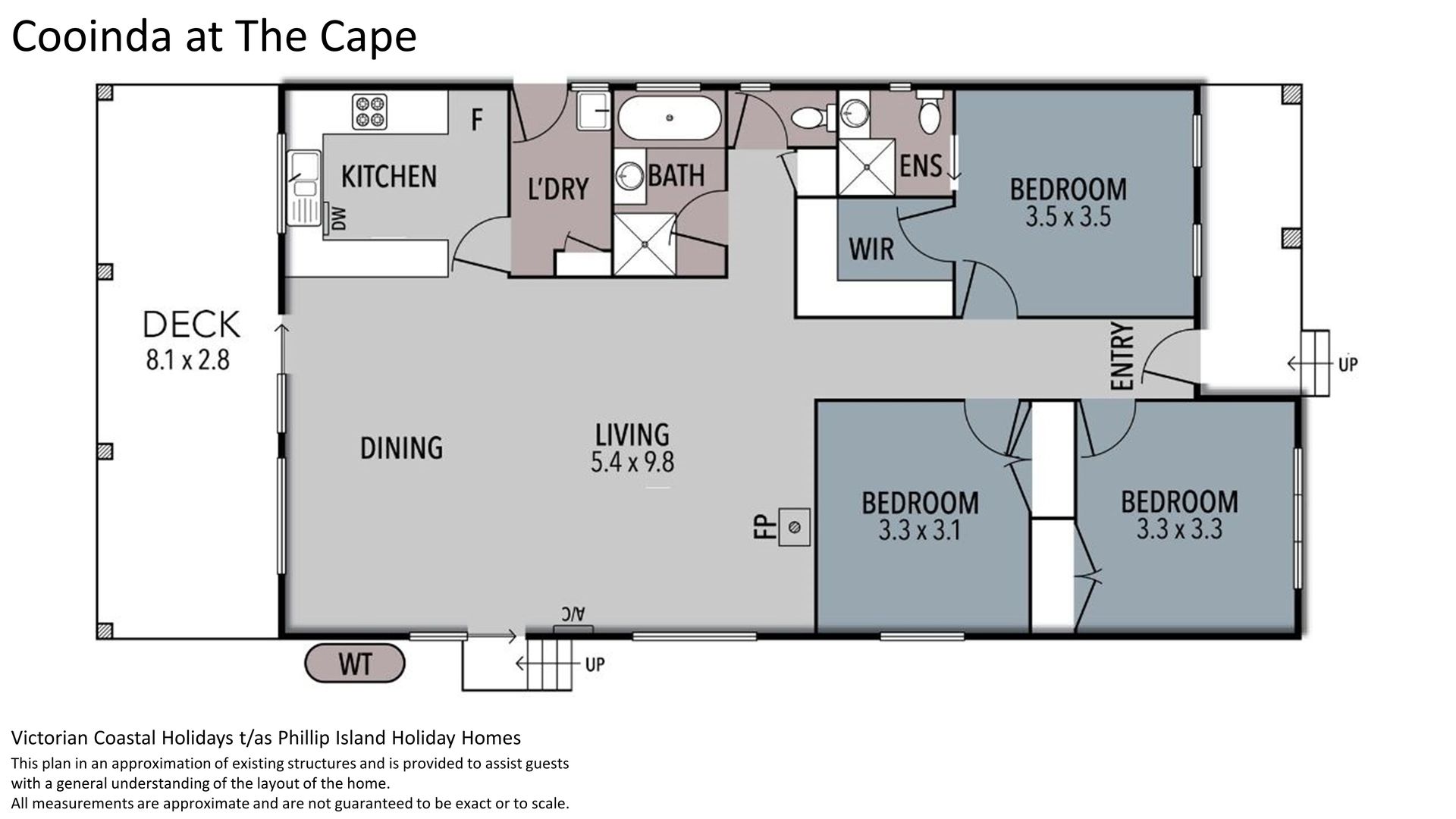 "Cooinda at The Cape" is a lovely family & pet friendly home in Cape Woolamai, a comfortable walk from both the safe swimming beach & surf beach, and close to the supermarket, restaurants & cafés of Cape Woolamai. Some of the many features of this lovely home are detailed below: