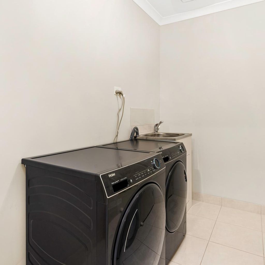 The kitchen has a walk in pantry and the open plan dining/living room (with 75 inch smart TV) provides a central area to enjoy. The Master bedroom has a WIR and en suite (with shower and toilet) while the other three bedrooms (each with BIR) share access to the main bathroom (with bath and shower) and a separate toilet. There is also a second living room (with 75 inch smart TV) and laundry.