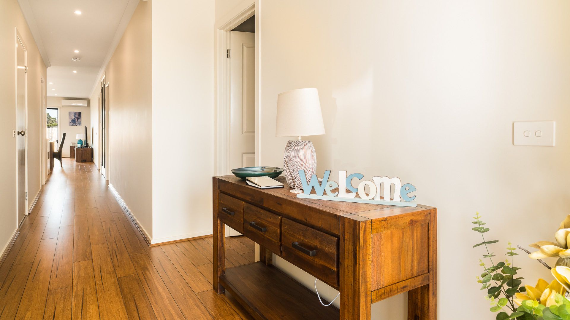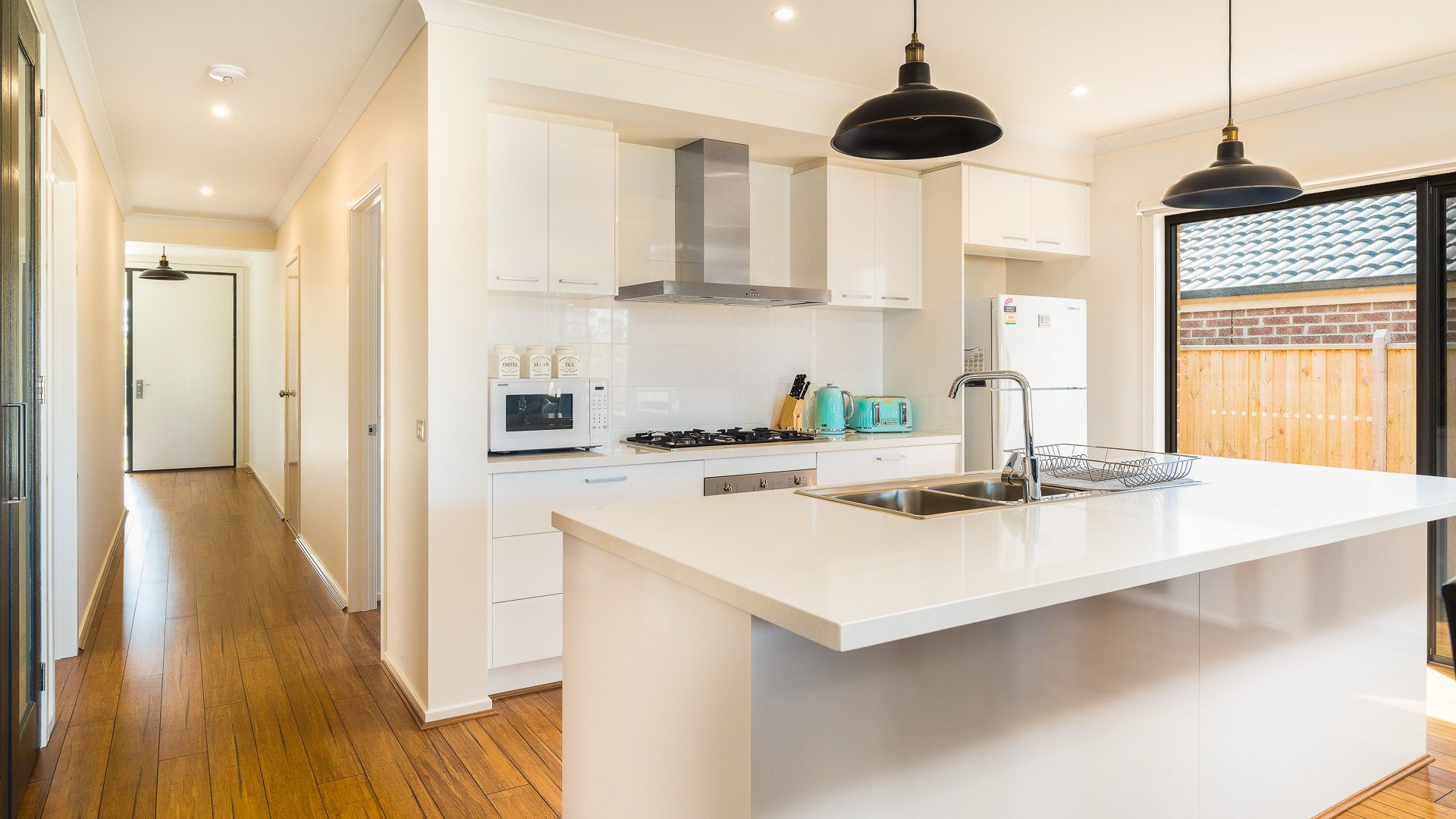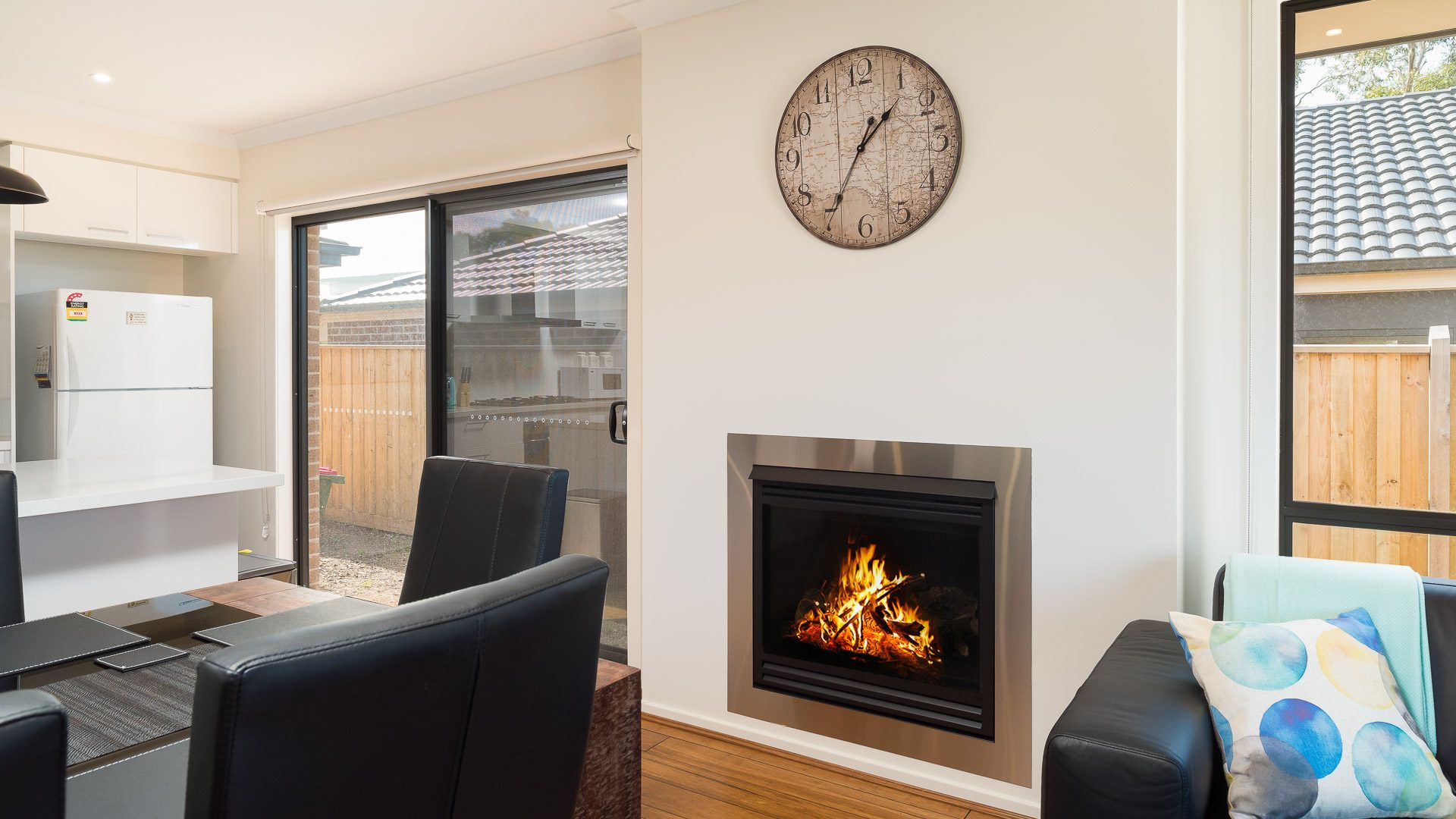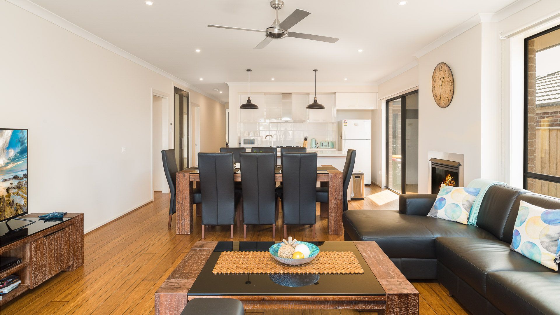 The long central hallway provides access to Bedroom 1 at the front of the home, featuring a WIR and ensuite (with shower, toilet & double vanity), Bedroom 2 & 4 (each with BIR) and internal access to the Garage. At the rear of the home is the large open plan Kitchen/Dining/Living room (with gas fireplace and TV with chromecast), leading on to the outdoor Deck. A small side hallway leads to Bedroom 3 (with BIR), a Bathroom (with bath & shower), a separate Toilet and a fully equipped Laundry (with washing machine & clothes dryer).