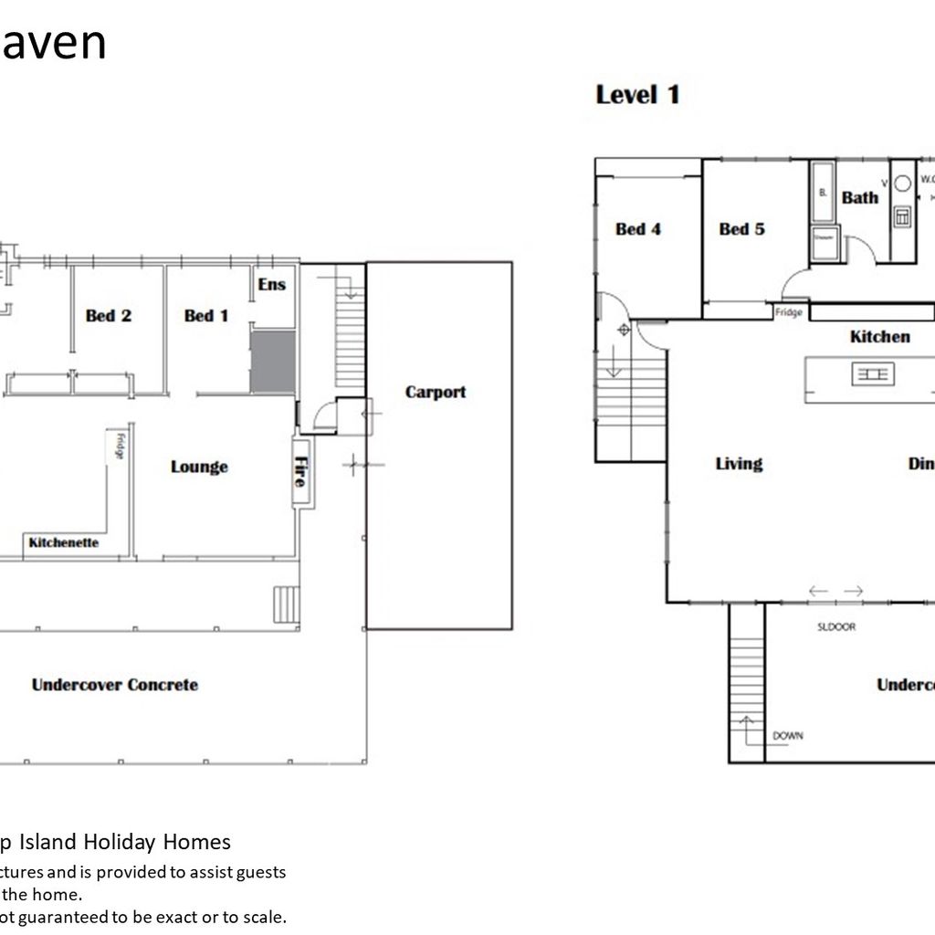 Upstairs is an enormous open plan Kitchen/Living/Dining Room (with smart TV, DVD player & movie library) with delightful water views and providing access to the first floor Deck. On this level are Bedrooms 4, 5, 6 and 7 each with BIR, another Bathroom (with bath & shower), a washing machine and a separate toilet. A separate corner section of this floor is not available to guests (as per the floorplan).