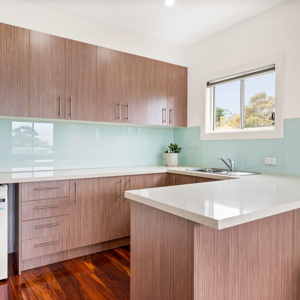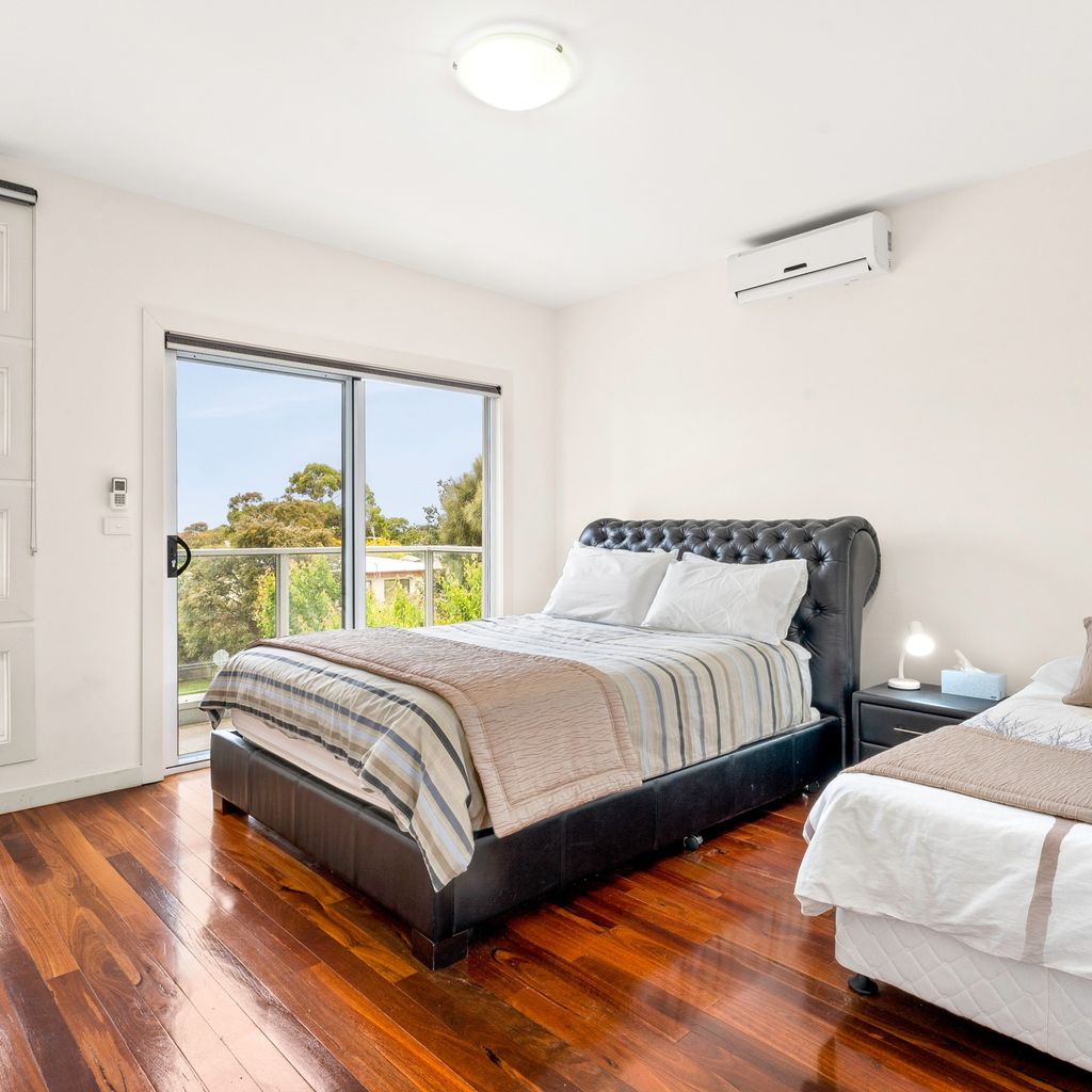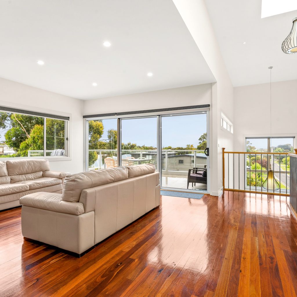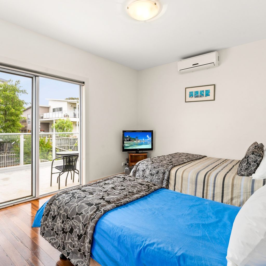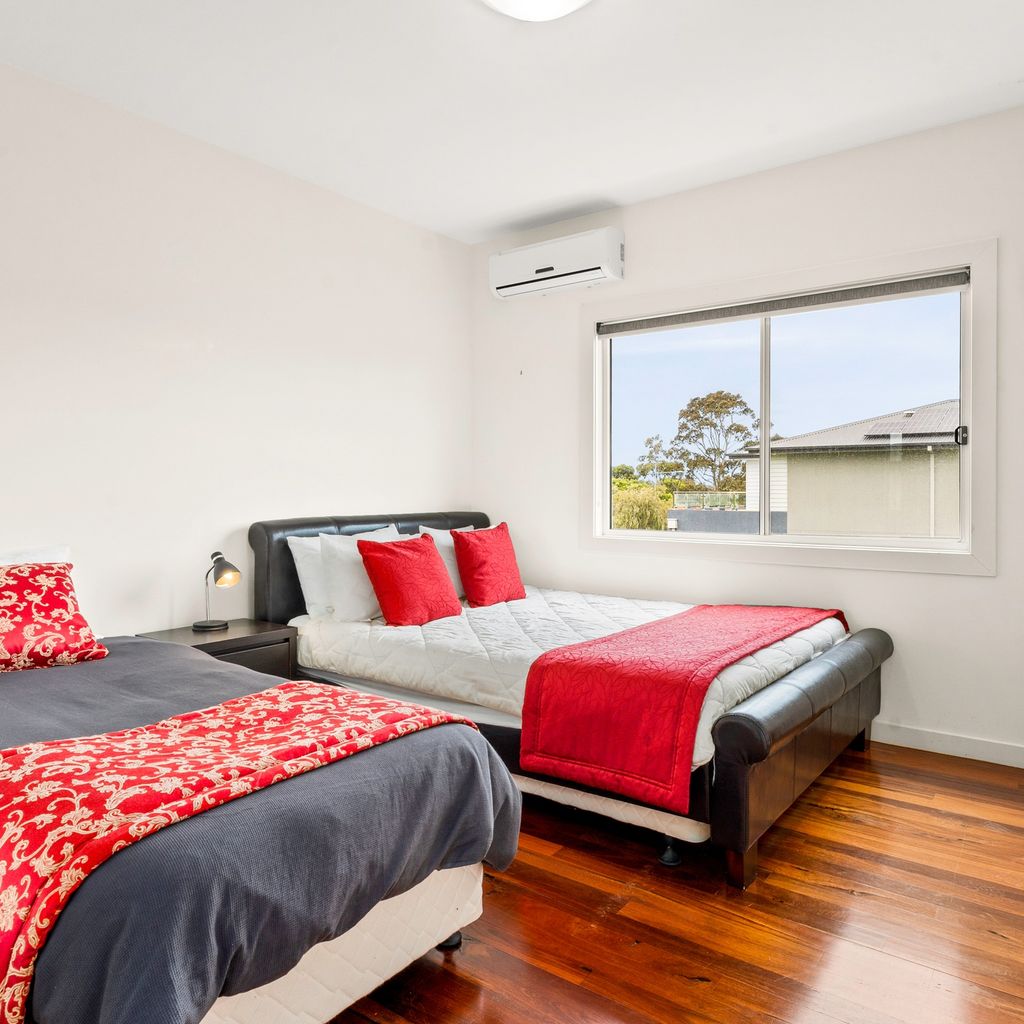 The rear ground floor deck provides a covered place for outdoor meals (with a huge 12 seater table, another 12 chairs and BBQ) and overlooks the fully enclosed rear yard, with the amazing 6-seater heated spa and hot/cold water outdoor shower. The side covered deck provides yet another space to relax. There is space for 2 cars in the double garage with internal access into the home (and roller door access into the rear yard), and space in the driveway for another vehicle. The upstairs front balcony provides views to the Cowes beach and bedroom 3 has a private rear balcony.
