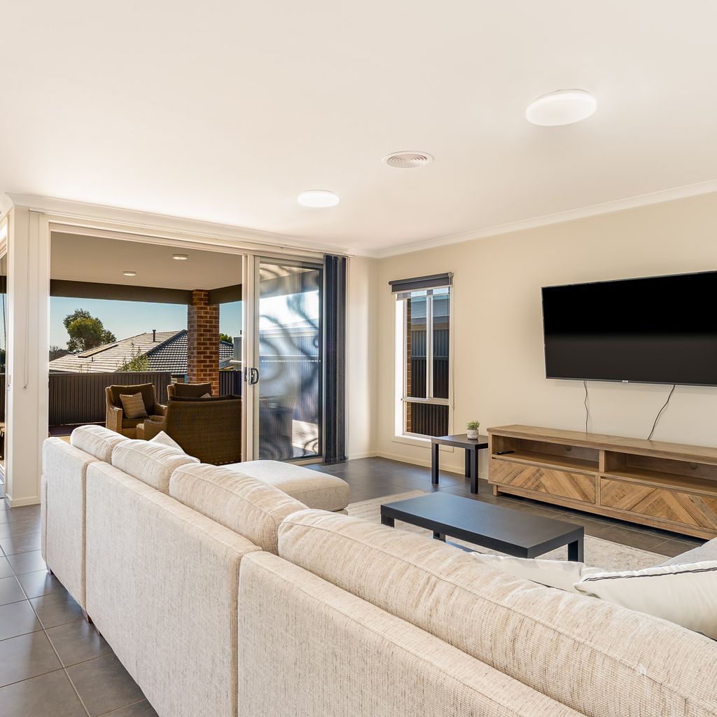 This expansive home offers a Master bedroom with en-suite (with double vanity, shower and separate toilet), a separate laundry, central open plan kitchen (with walk through pantry) opening into the generous sized dining and family room (with smart TV). Close by is the separate 2nd living (or sitting) room and nearer the front of the home is TV room (with smart TV). Bedrooms 2, 3 and 4 all have BIR and close access to the main bathroom (with bath and shower) and separate powder room.