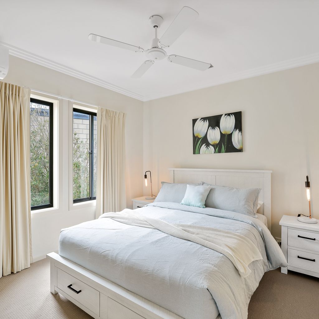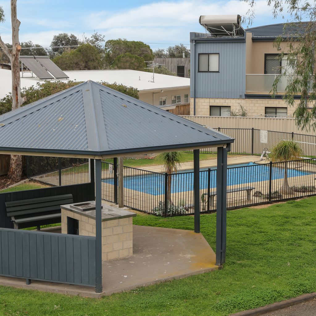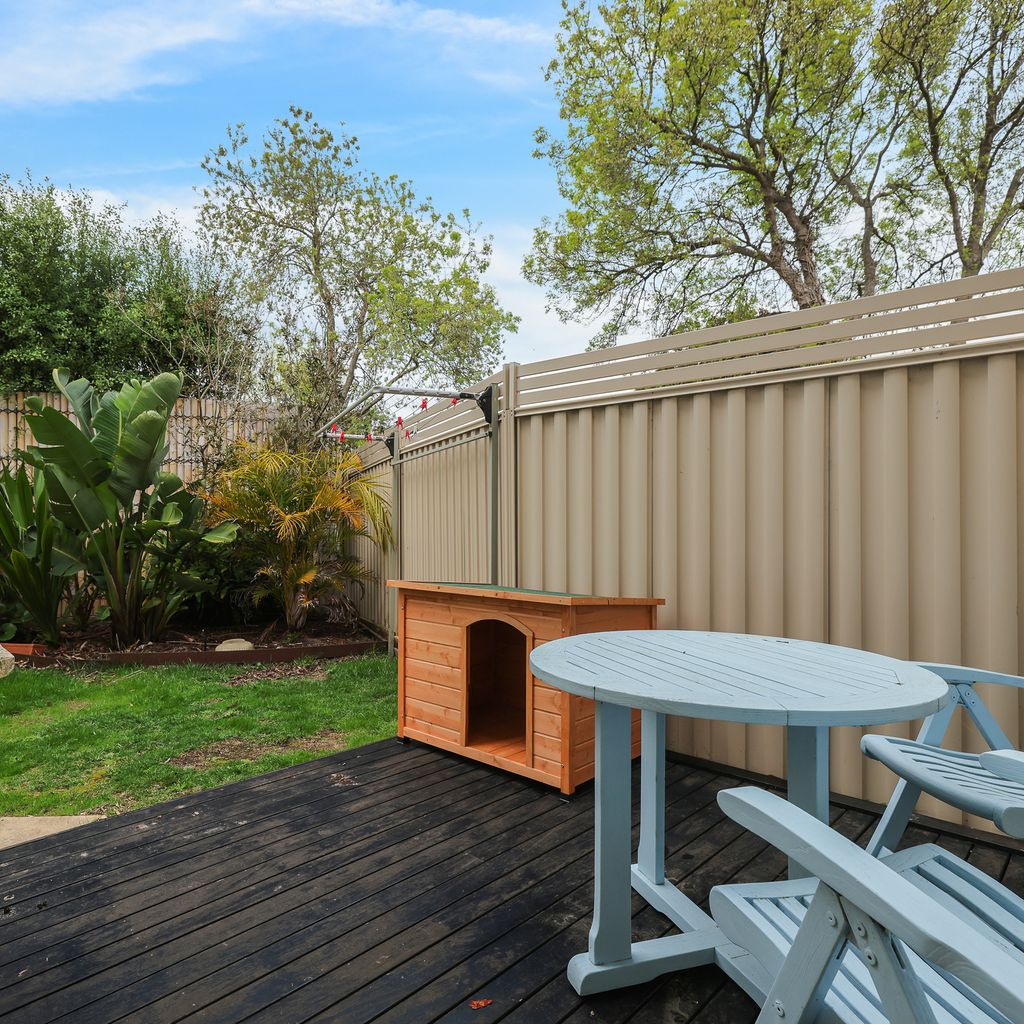 The ground floor Deck & Patio (with 4 seater table & 2 recliners) overlooks the grassy fully enclosed rear courtyard with dog kennel (please note, smaller dogs would be more suited to this space). The upstairs Balcony (with sunshade awning, gas BBQ, 6 chairs & 2 recliners) overlooks the shared facilities, including a solar-heated in-ground pool and shady communal BBQ area. There is a Double Garage (with foldup table tennis table & internal access to the home) that accommodates 2 cars plus some additional communal parking spots which are available on a first-come, first-served basis.