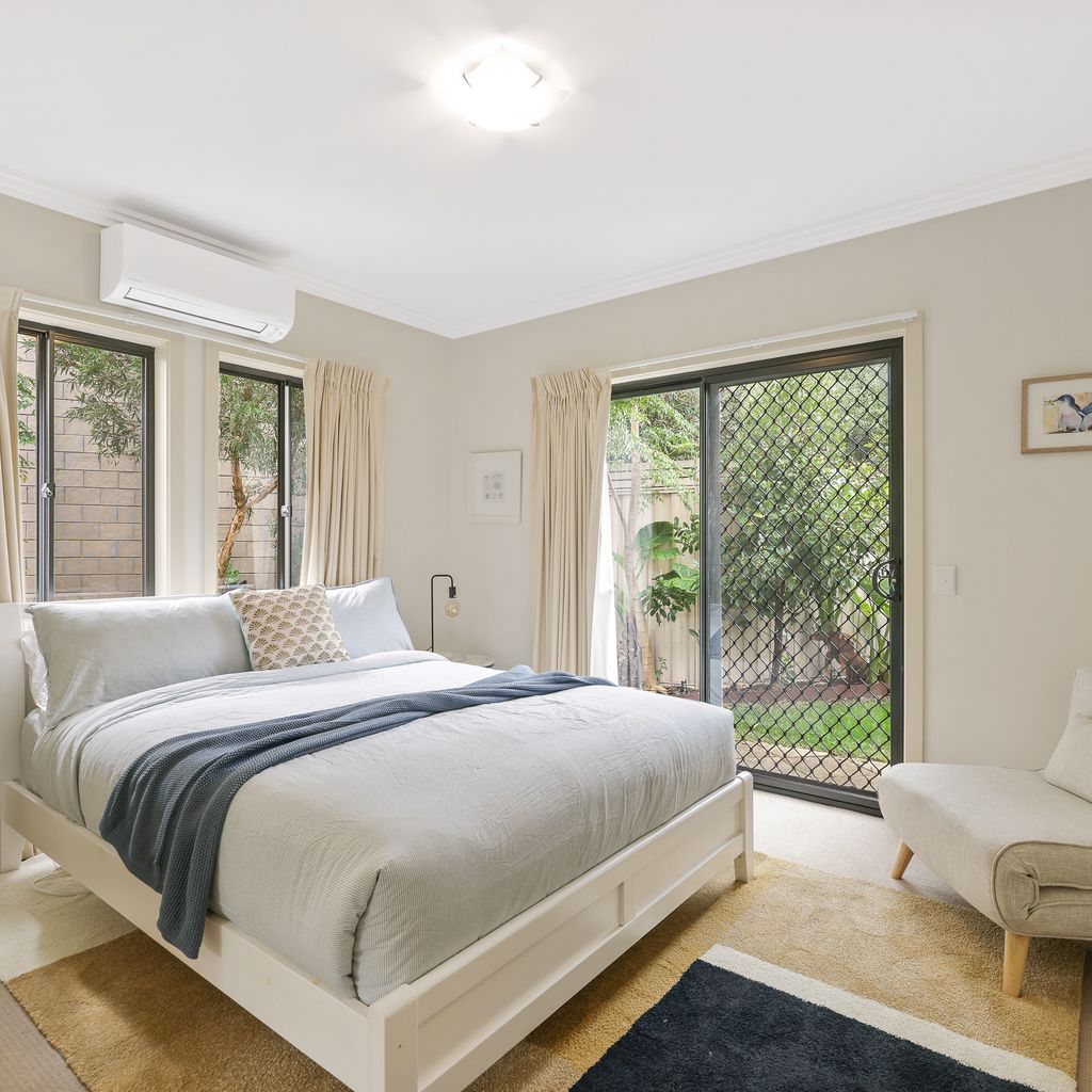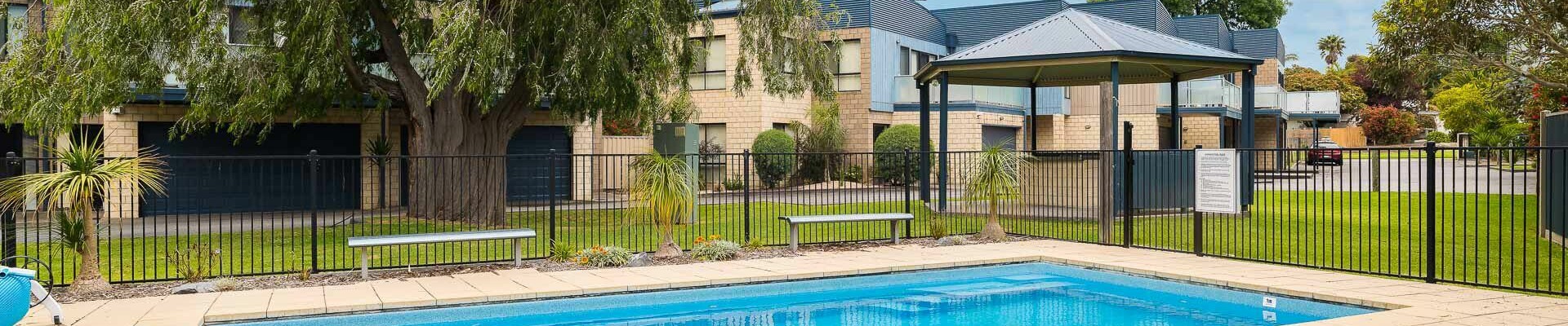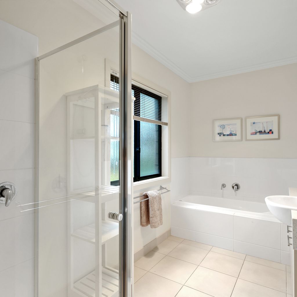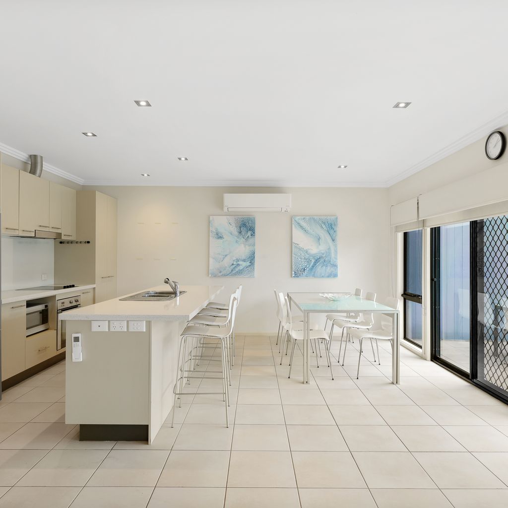 The ground floor Deck & Patio (with 4 seater table & 2 recliners) overlooks the grassy fully enclosed rear courtyard with dog kennel (please note, smaller dogs would be more suited to this space). The upstairs Balcony (with sunshade awning, gas BBQ, 6 chairs & 2 recliners) overlooks the shared facilities, including a solar-heated in-ground pool and shady communal BBQ area. There is a Double Garage (with foldup table tennis table & internal access to the home) that accommodates 2 cars plus some additional communal parking spots which are available on a first-come, first-served basis.