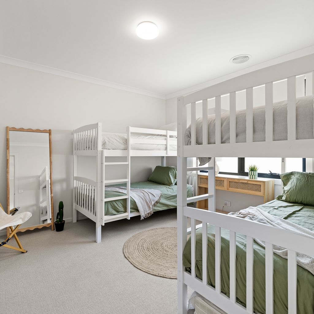 Upstairs, a central hallway leads to Bedroom 2 (with BIR), Bedroom 3 & 4 (each with WIR), a Lounge Room (with 65" smart TV, games, books, etc), a Bathroom (with bath & shower), a separate Toilet and Bedroom 1, which features a large WIR and ensuite (with double shower, separate toilet and double vanity).