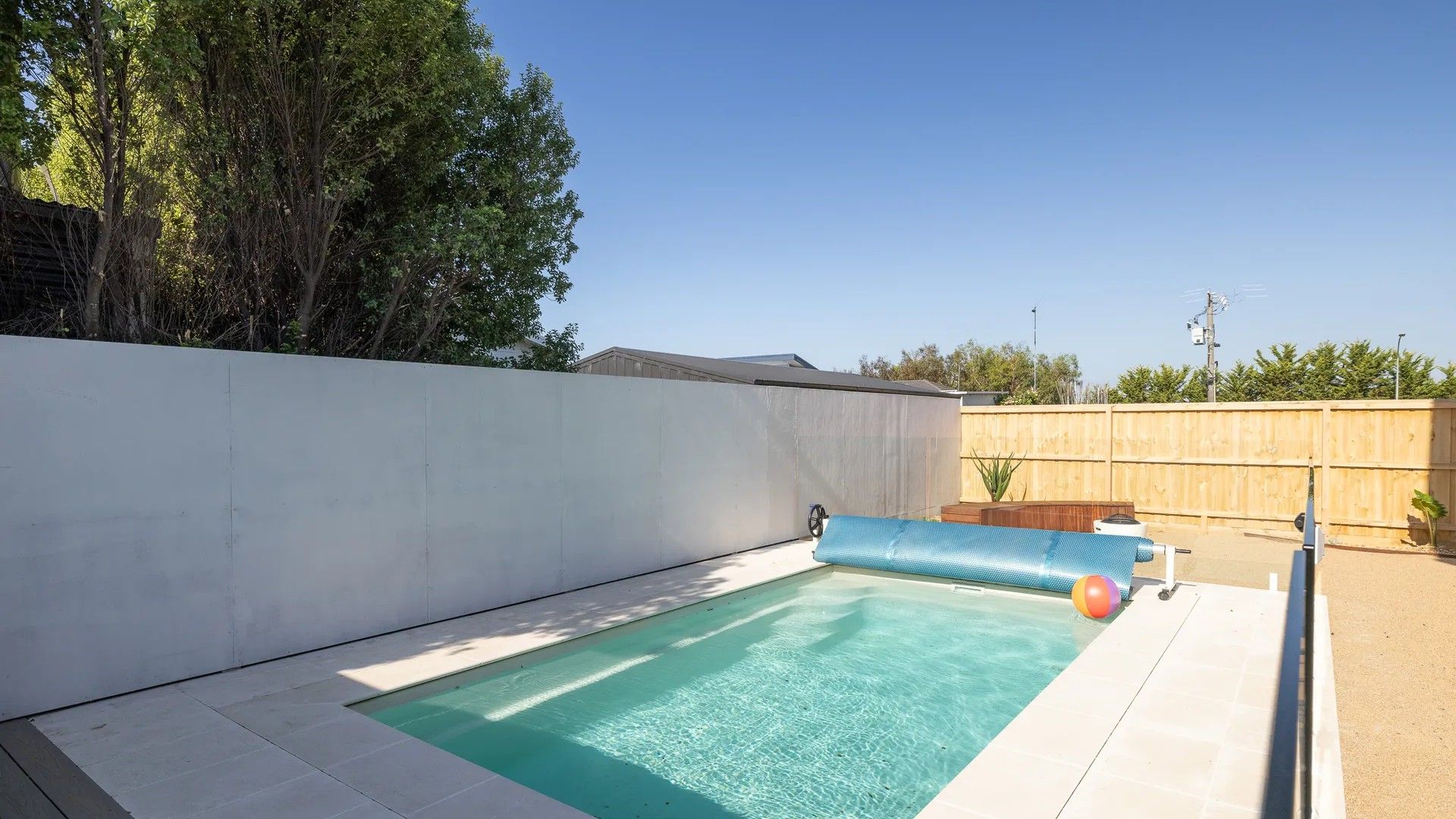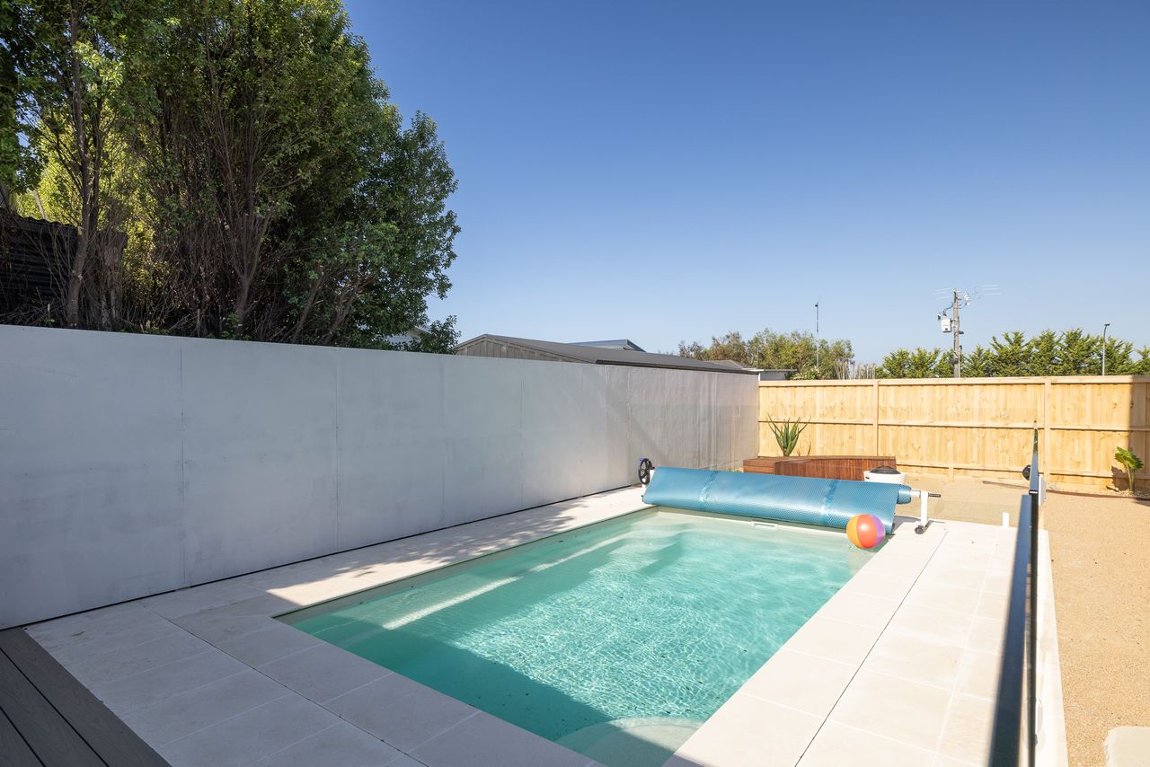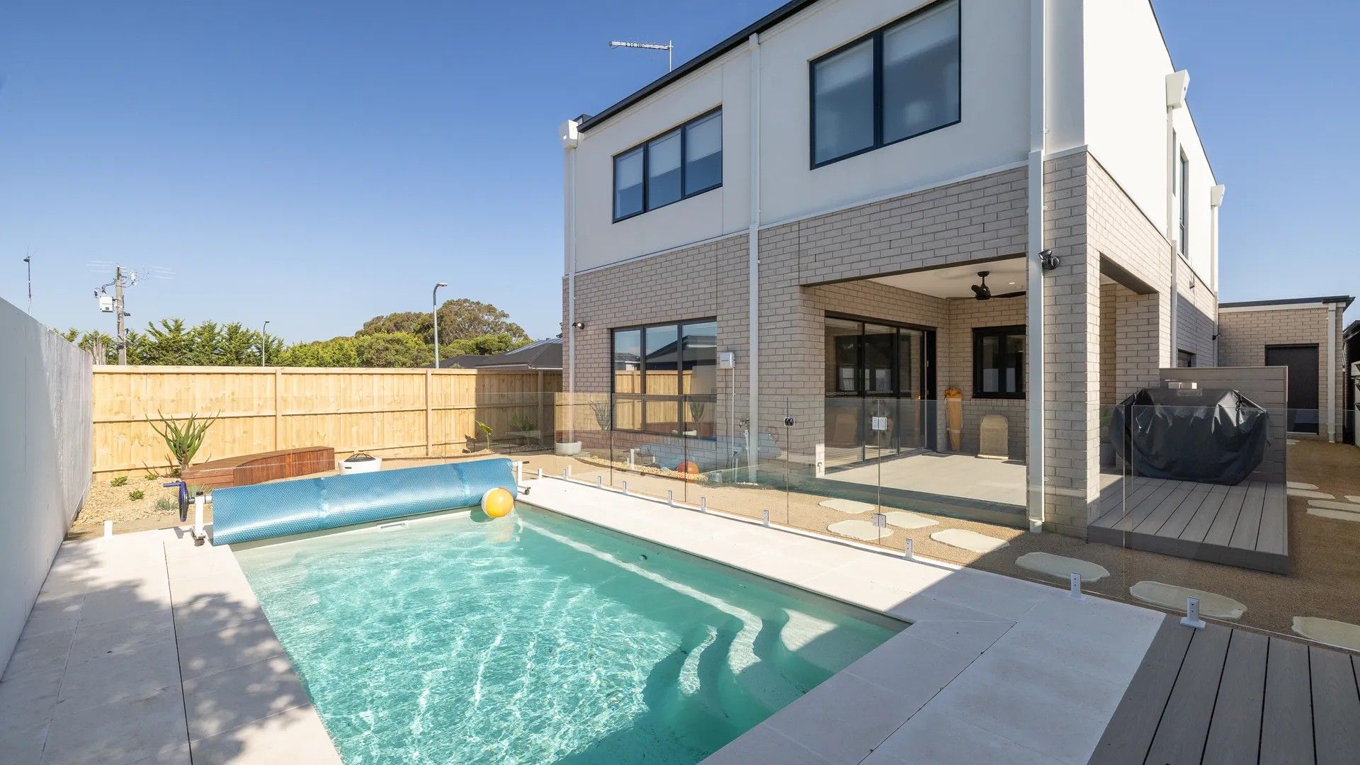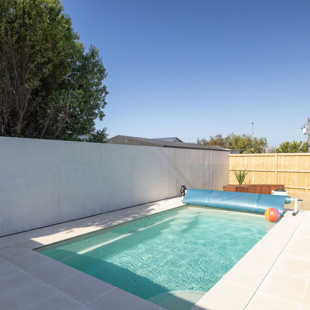 The covered outdoor area (with plumbed gas BBQ and seating for 8) overlooks the fully enclosed rear yard with the incredible private electric-pump heated swimming pool (5m x 2.8m; 1.2-1.65m deep) that also includes a low smoke firepit (no firewood provided). The Double Garage (with internal access and small sized multi-table for fuzbol, table tennis, air hockey and billiards) has space for 1 car, with additional space for another car in the driveway.
