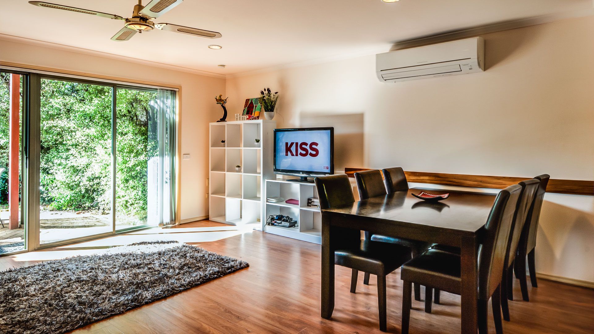 There is a wall mounted reverse cycle split system unit in the Living room, plus there are ceiling fans in the Living Room and in Bedrooms 1 & 2, with a stand-alone fan in Bedroom 3.