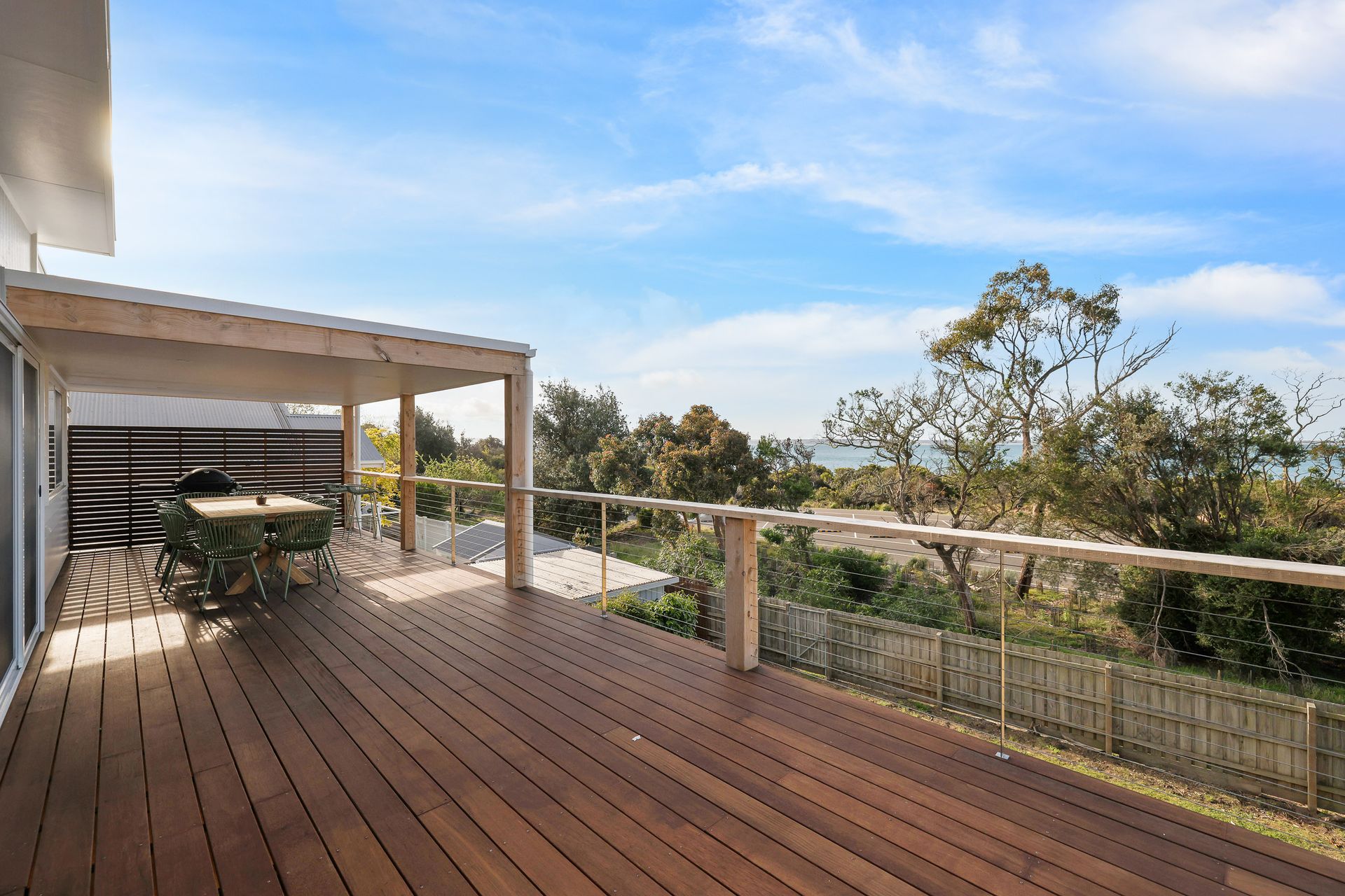The first floor semi-covered Deck (with gas BBQ & seating for 10 people) has stunning water views and overlooks the enclosed rear yard. The ground floor covered Deck (with seating for 6 people) steps out to the rear yard, which also features an outdoor shower and with the beach just steps away through a gate in the rear fence. There is parking for 2 cars in the double carport, plus space for 2 more vehicles (cars and/or a boat) in the driveway.