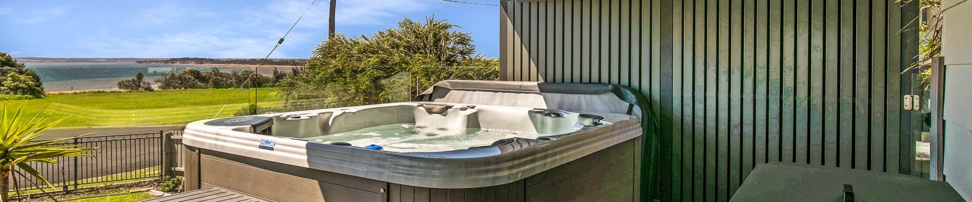 Pet & family friendly home with stunning rural and water views, undercover outdoor 6-seater spa, coonara wood heater and free Wi-Fi