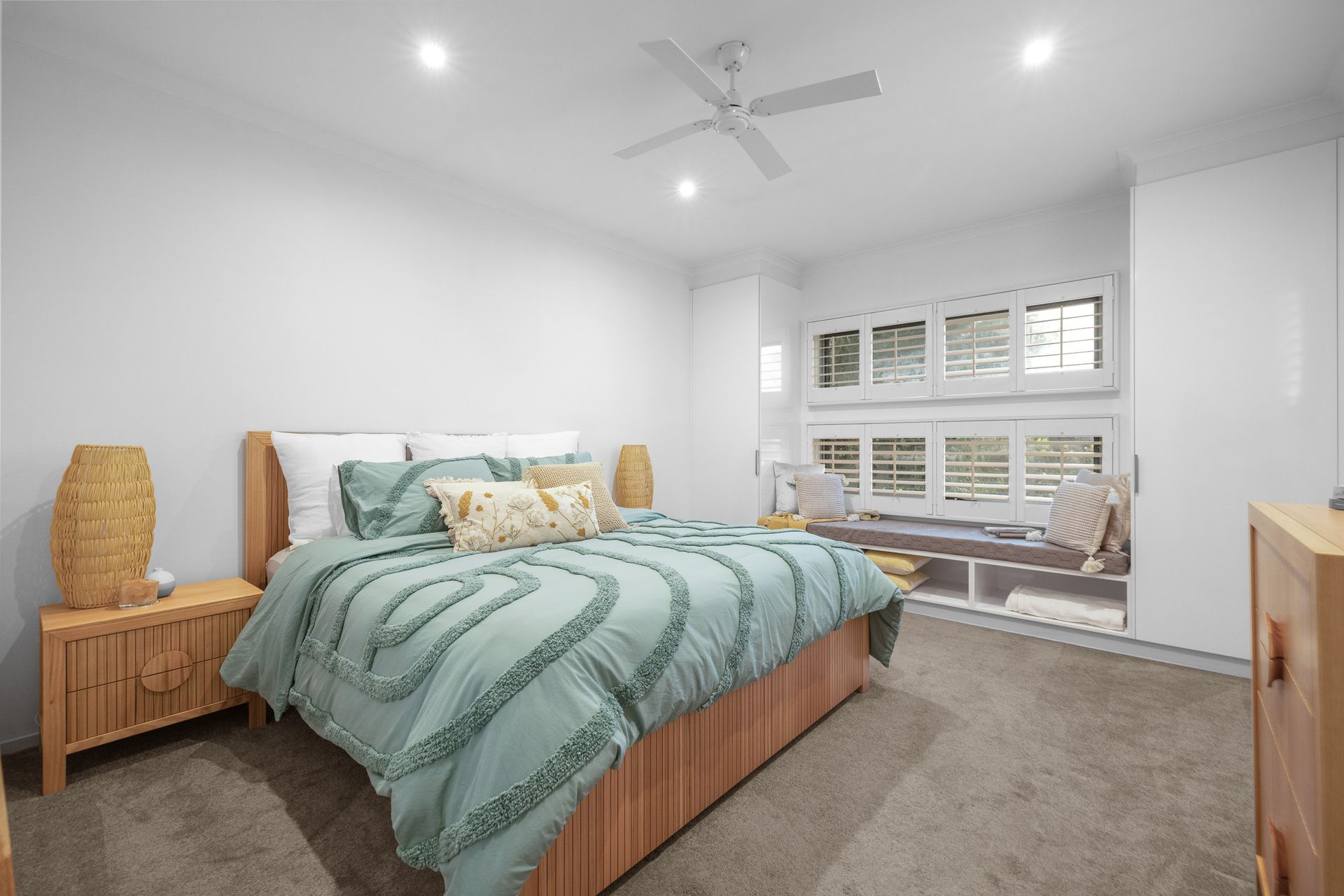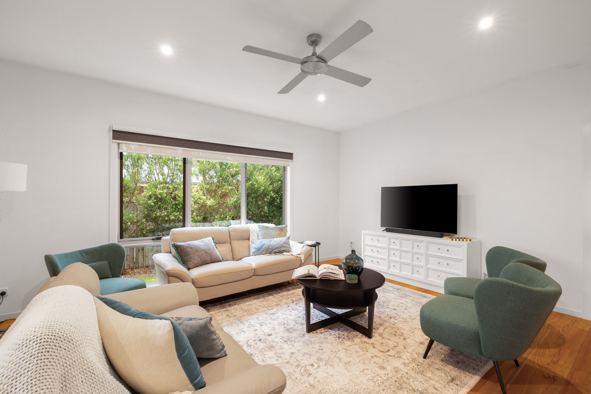 There are two wall-mounted reverse cycle air conditioners in the home; one in the front Living Room, and another in the Kitchen/Dining room, along with ceiling fans in both the front and rear Living Rooms, the rear Pergola and all 4 Bedrooms. The home also includes one stand-alone heater for use where required.