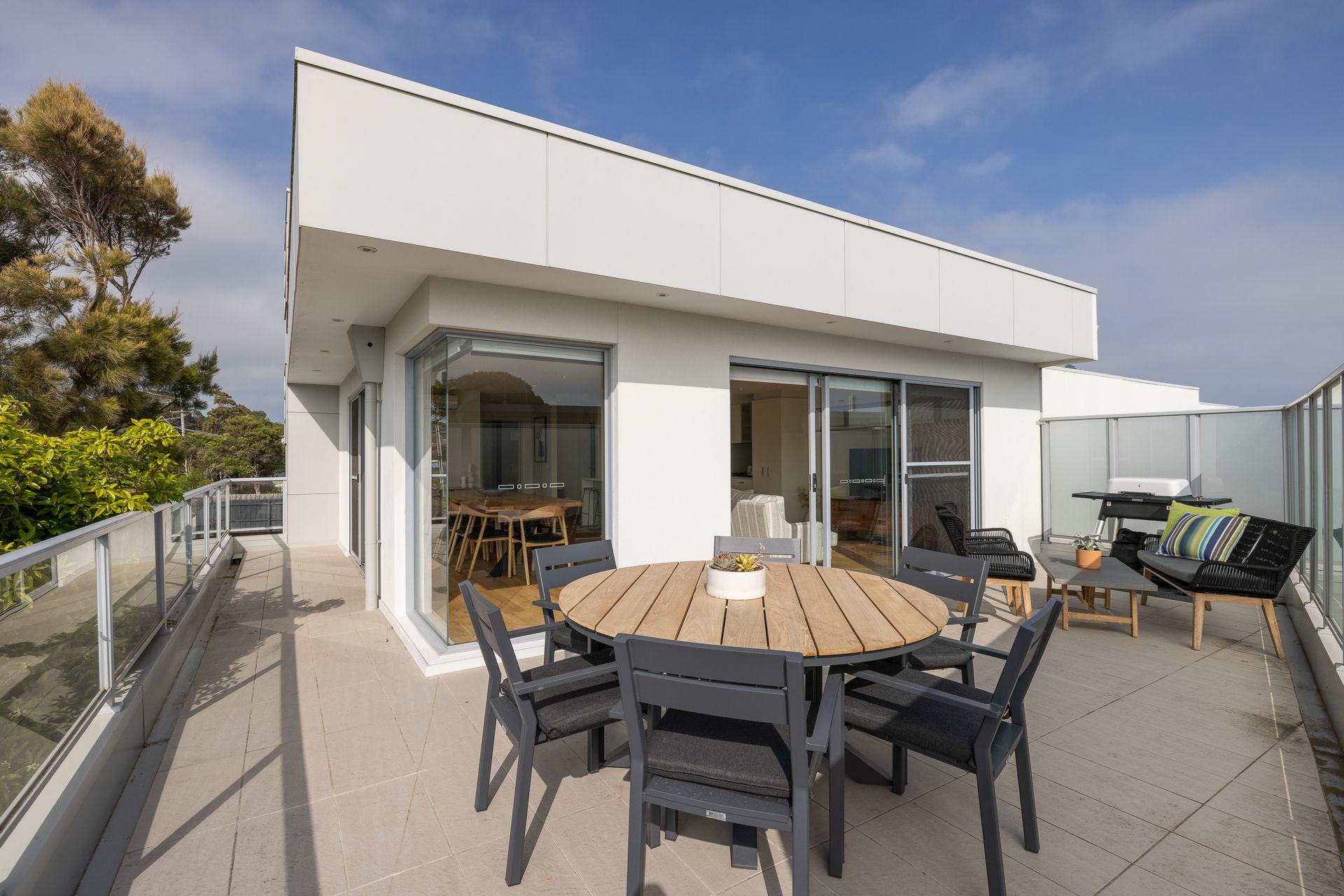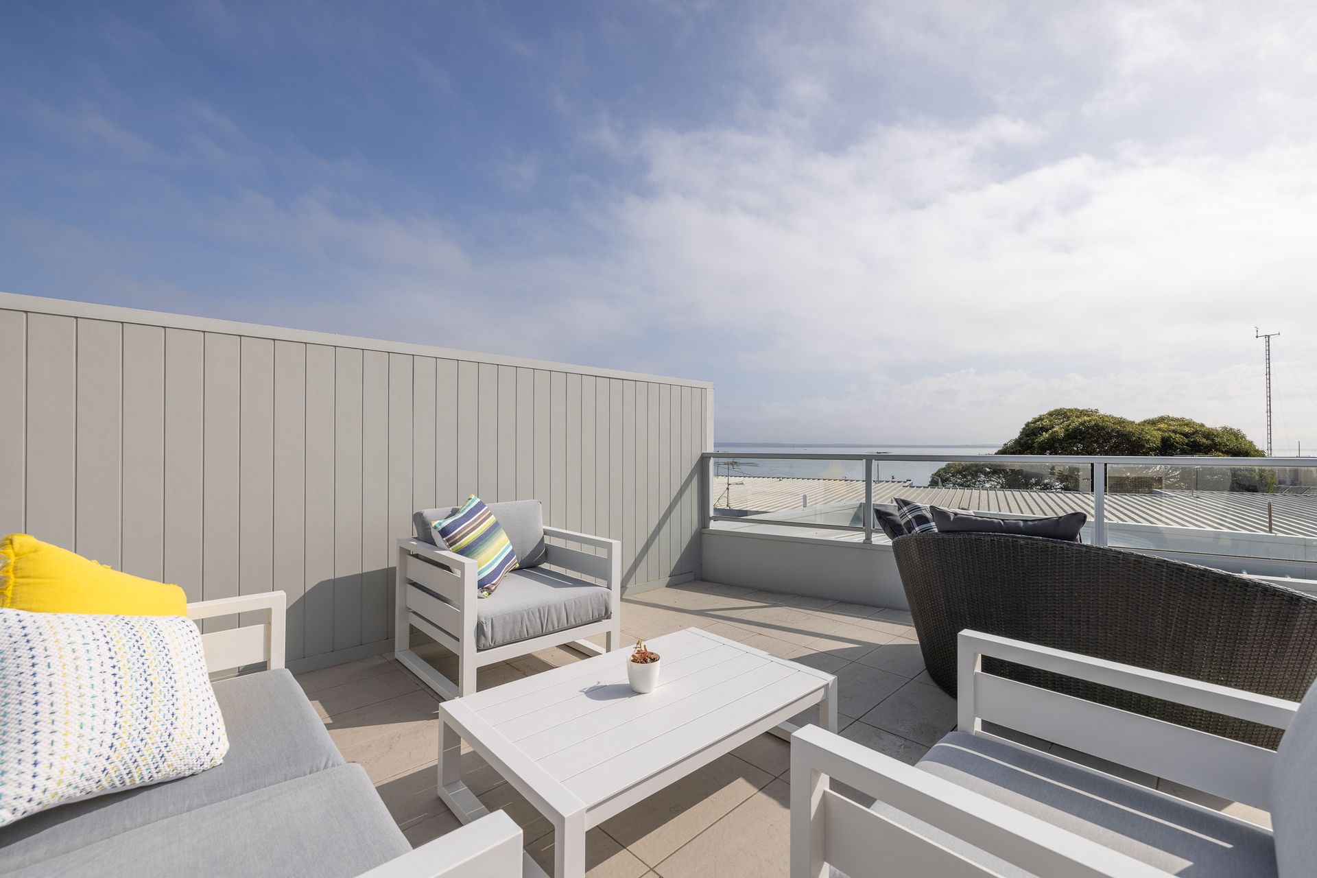 The rooftop Terrace (with Bar with 6 stools, day bed, lounge setting, 2 chairs & coffee table) is an incredible place to relax and entertain, with breath-taking unobstructed 180 degree water views. The 1st floor balcony wraps around the home and features a gas BBQ, 6 seater table/chairs & outdoor setting with couch & 2 chairs & coffee table. The enclosed front garden is a rarity in such a central location and perfect for children. The Single Garage is not currently available, but there is room for 1 vehicle (car or boat) in the driveway, plus plenty of street parking.