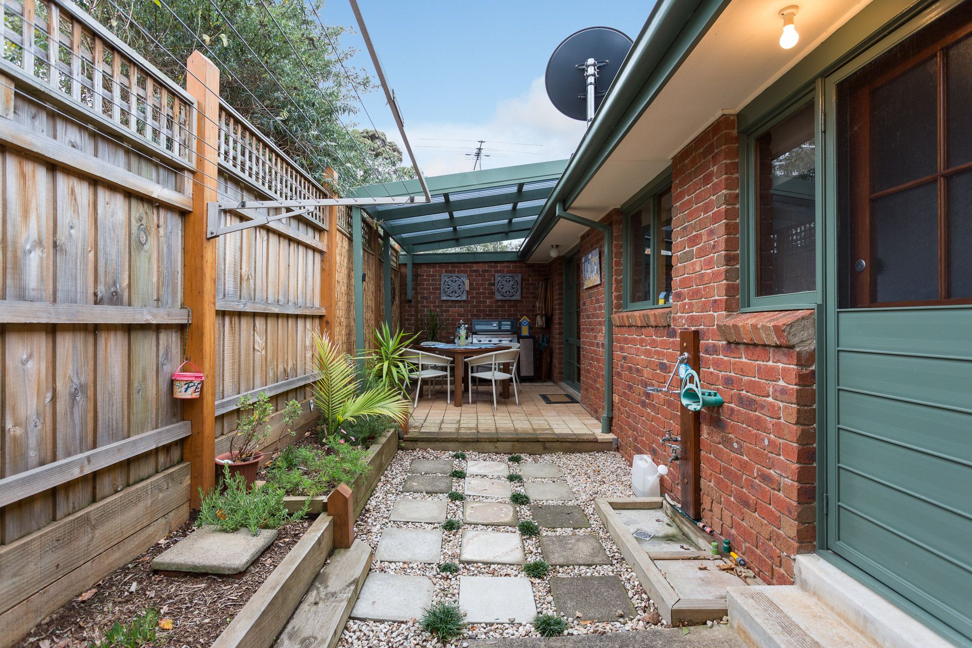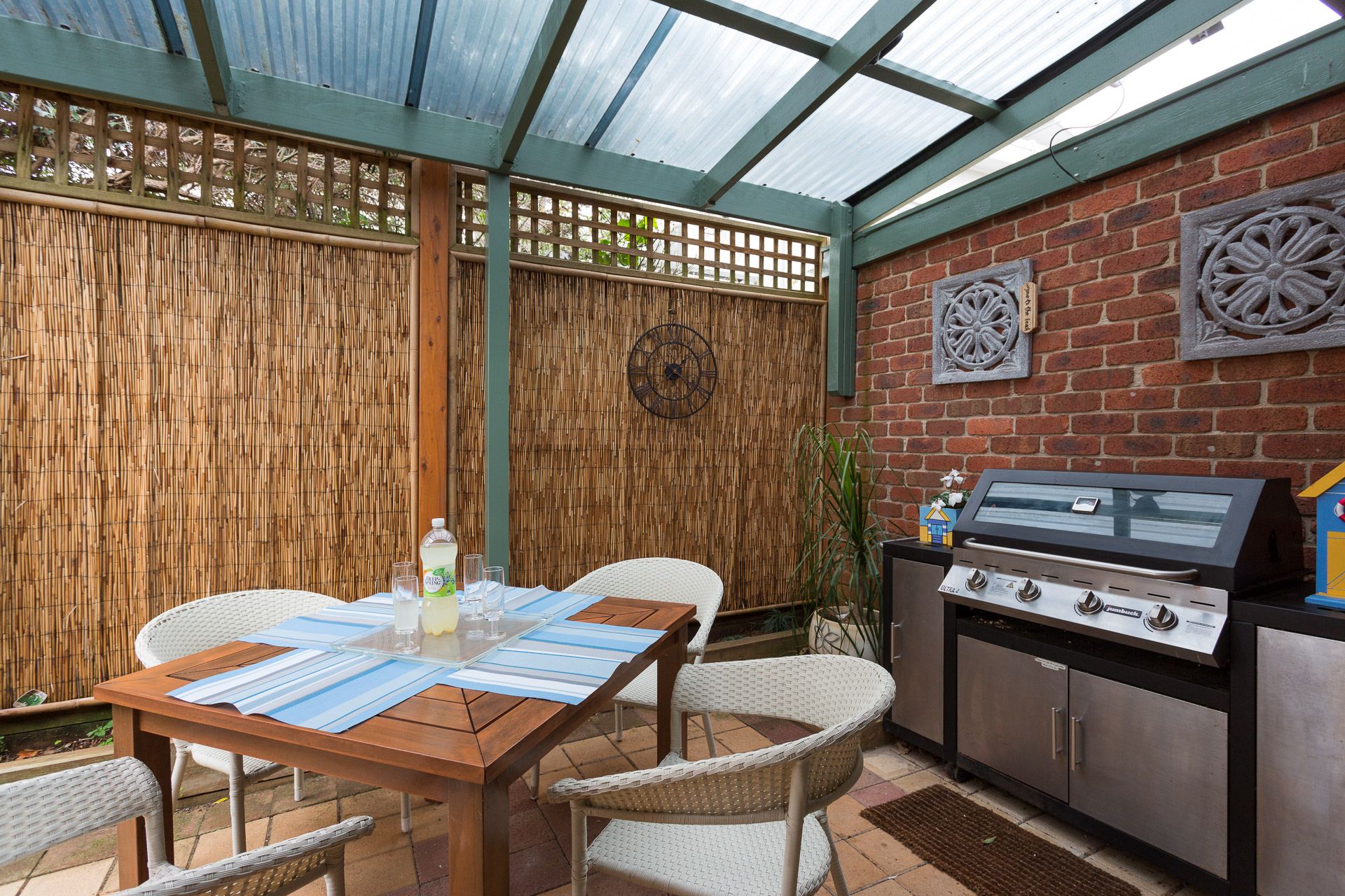 The delighful sheltered rear semi-covered courtyard (with gas BBQ & seating for 5) provides a lovely private area to relax. The Single Garage (with table tennis table, boogie boards, deck chairs & beach play equipment) is accessed via the rear courtyard and provides another space to relax and enjoy this fantastic family-friendly home in central Cowes. There is one dedicated car space in front of the home, with additional street parking available. The Garage is not for car parking, however guests could also fold up the table tennis table in the Garage if they want to store motorbikes, etc, securely.